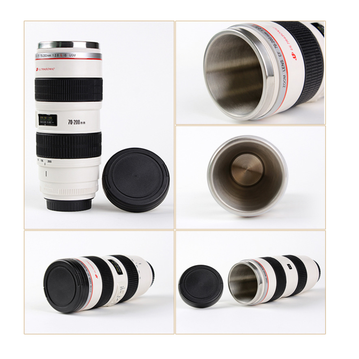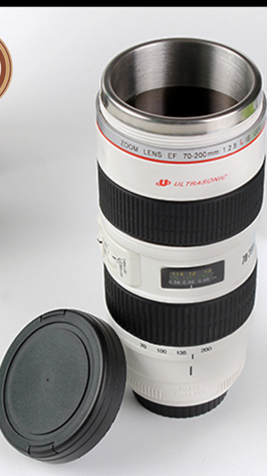 Big white SLR lens cup water cup insulation stainless steel liner creative gift