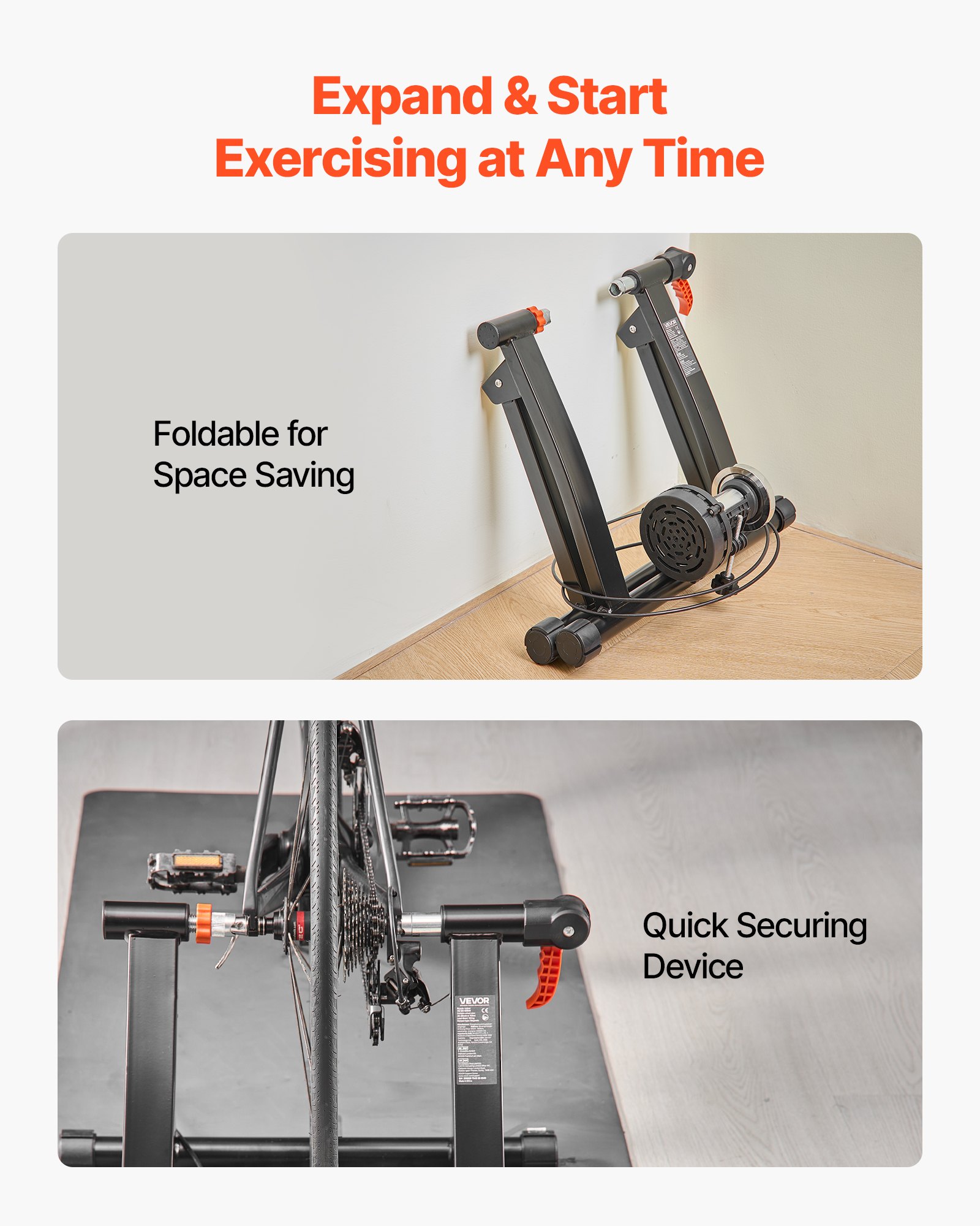 Foldable & Easy to Install: Our bike resistance trainer has a compact size after folding, making it convenient to store at home or carry in the trunk. It includes a quick-release lever for setup in a few minutes, allowing you to start training anytime