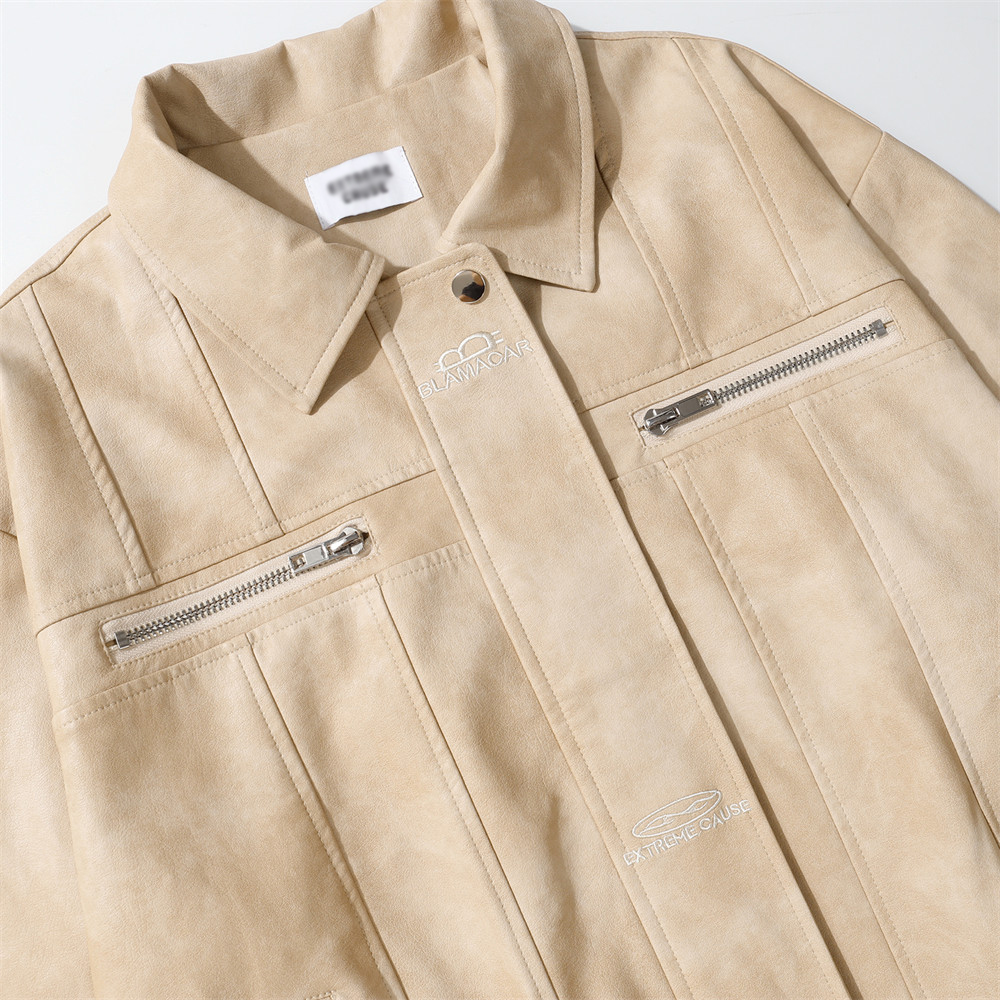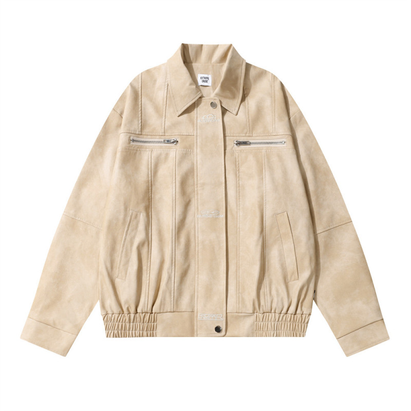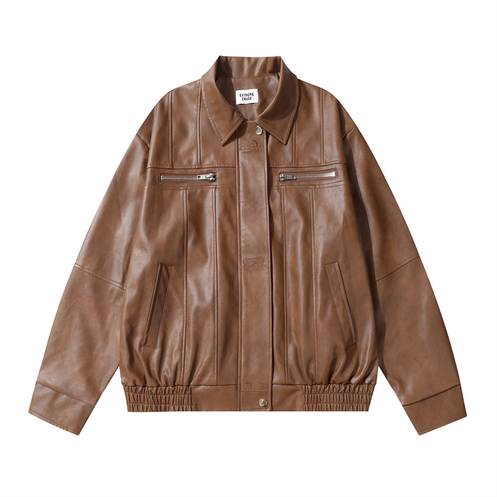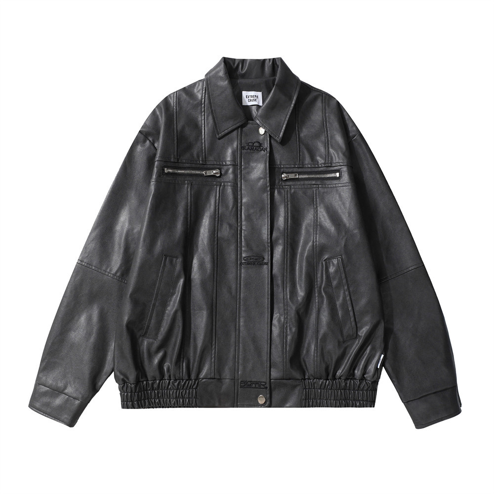 Biker's Men's Pilot Loose Split Stitching Lapel PU Leather Jacket