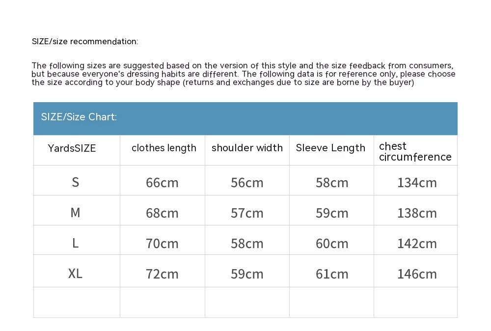 Note: 1. Asian sizes are 1 to 2 sizes smaller than European and American people. Choose the larger size if your size between two sizes. Please allow 2-3cm differences due to manual measurement. 2. Please check the size chart carefully before you buy the item, if you don't know how to choose size, please contact our customer service. 3.As you know, the different computers display colors differently, the color of the actual item may vary slightly from the following images.