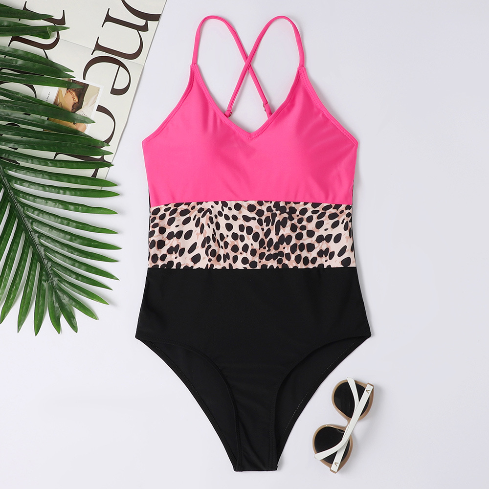 Bikini Contrast Color Swimsuit Female With Leopard Print