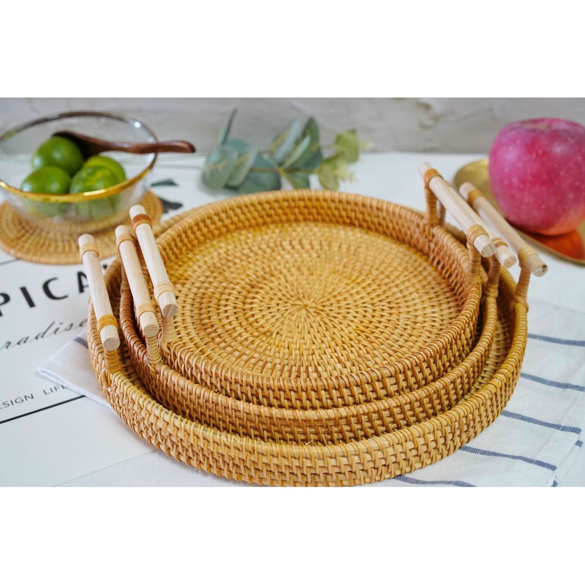 Specifications: Two-handle tray small, two-handle tray medium, two-handle tray large, two-handle tray three-piece set