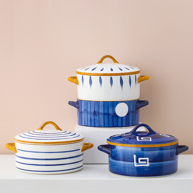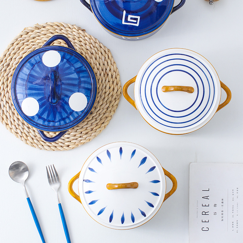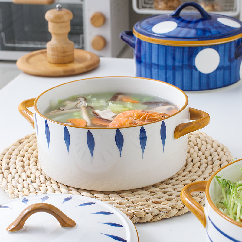 Binaural Soup Bowl With Lid Large Household Ceramics