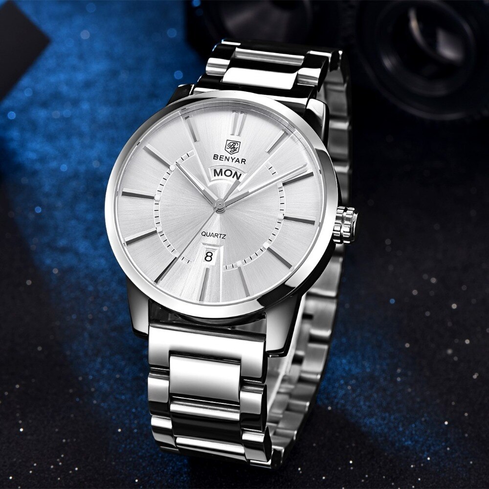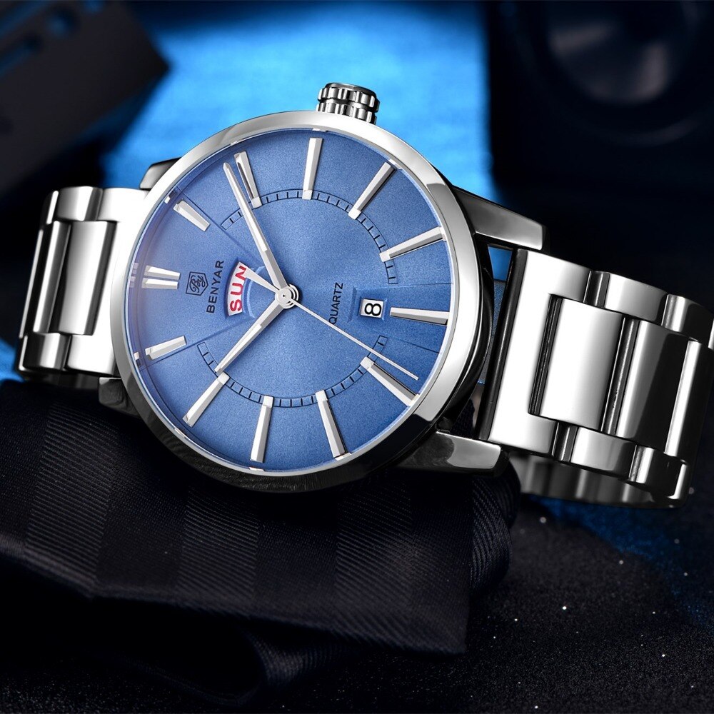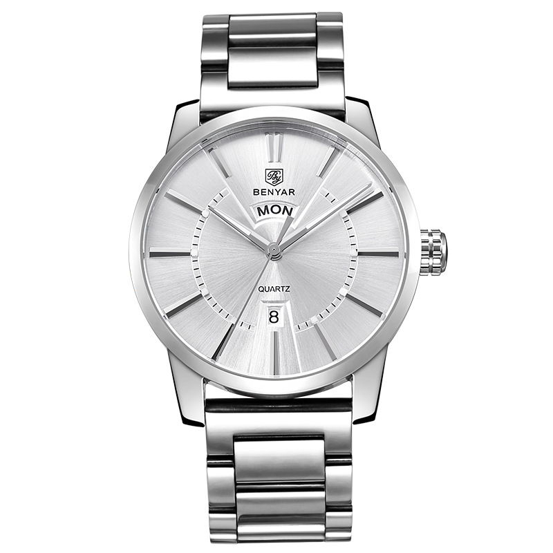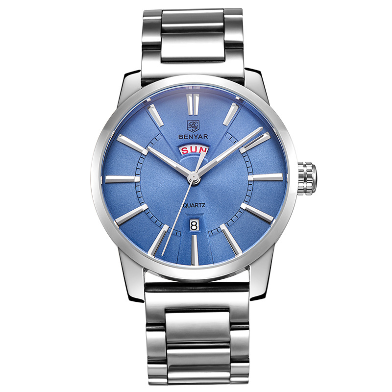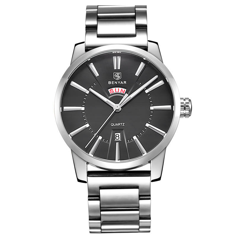 Binya Fashion Calendar Waterproof Steel Band Men's Watch