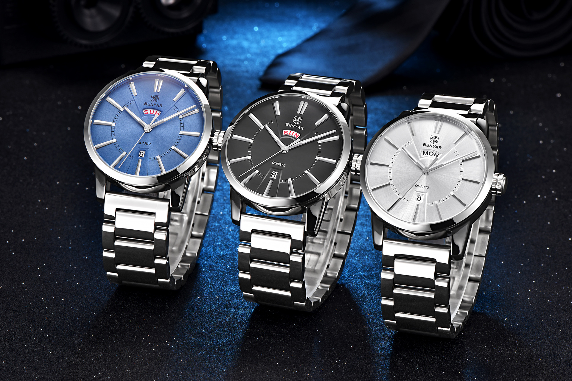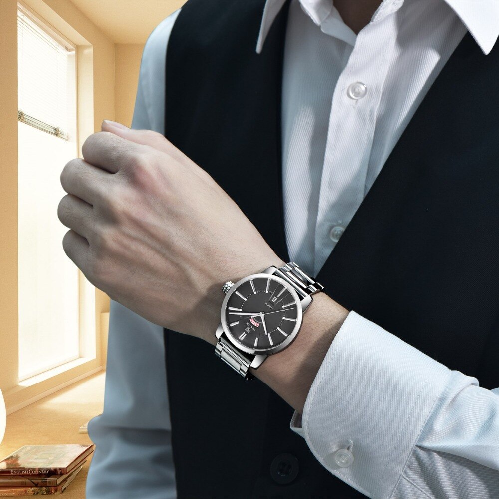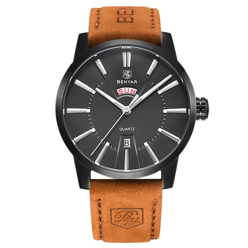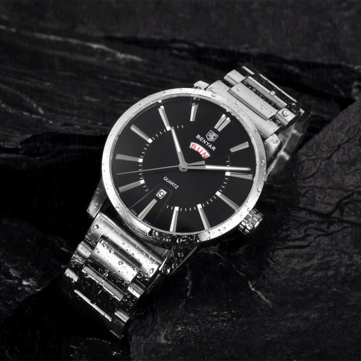 Binya Fashion Calendar Waterproof Steel Band Men's Watch