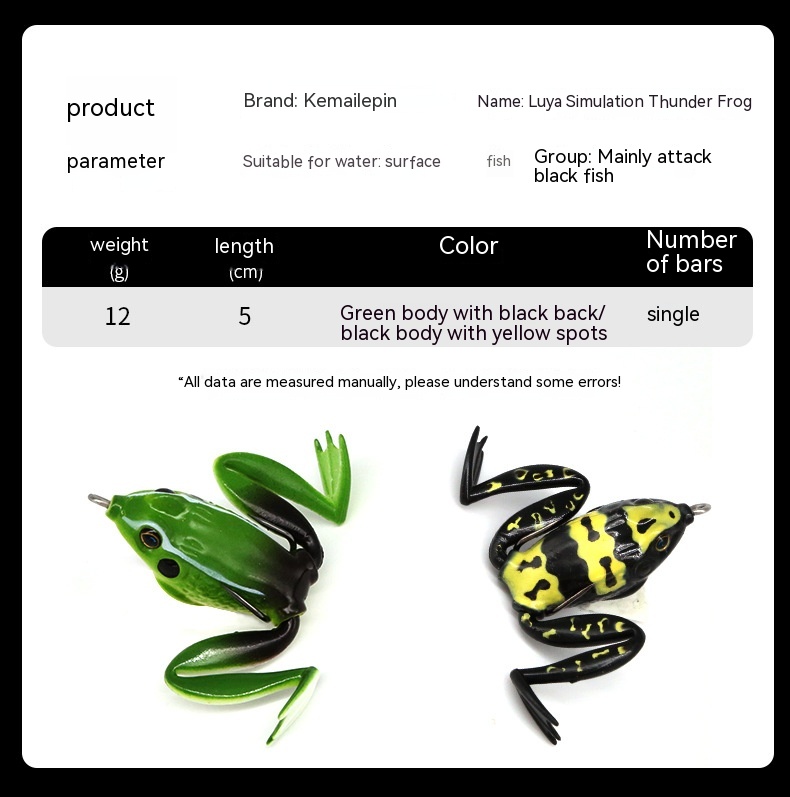 Category: LuyaFish bait form: fake baitColor: Grass green, black yellow dots