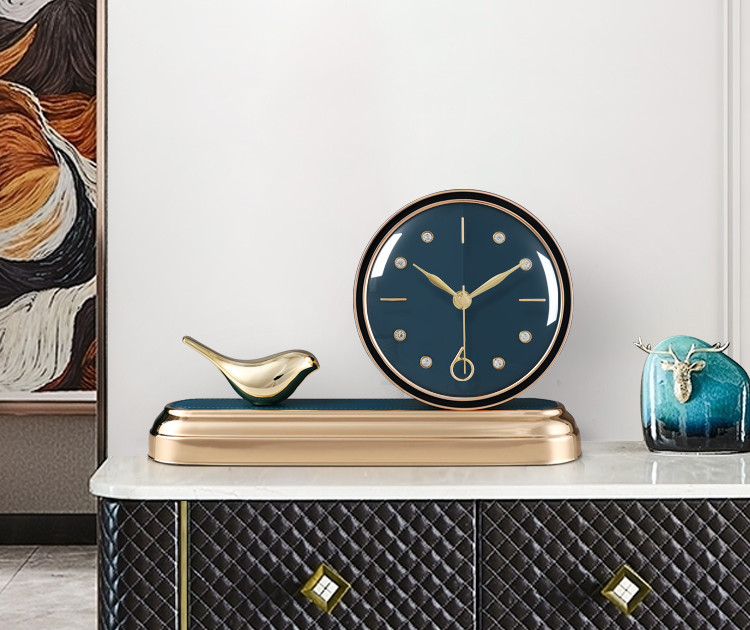 Modern light luxury bird clock home mute art desktop clock ornaments desktop living room creative fashion clock.