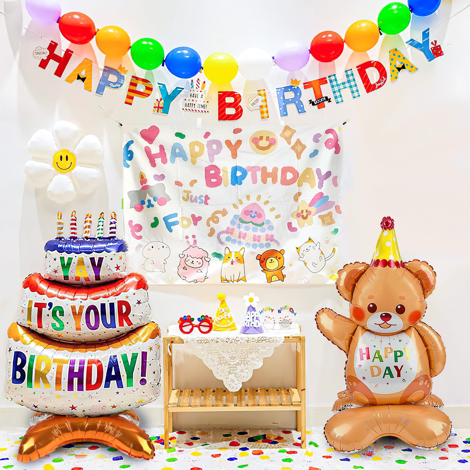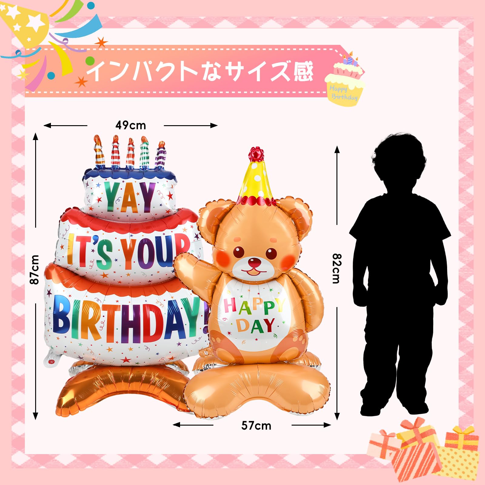 Extra large size: These birthday balloons are Big size, the inflated cake balloon is about 120 cm high × 82 cm wide, and the bear balloon is about 120 cm high × 55cm wide. It has a visual impact and is also very present from a distance. It is recommended as an event mascot or store display.