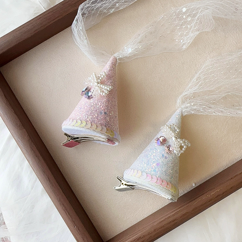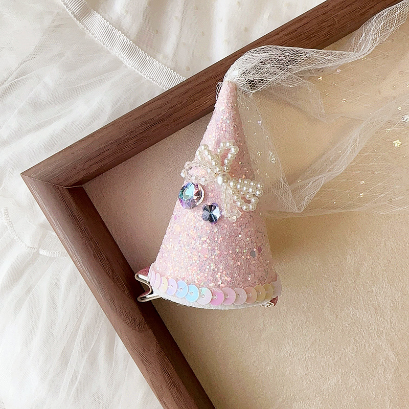 Color: white birthday hat, pink birthday hat, white feather, pink feather
