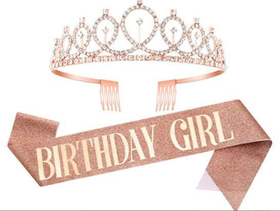 Birthday Party Shoulder Strap Set Birthday Girl Etiquette Belt Crown Rose Gold Gold Powder Cloth Shoulder Strap