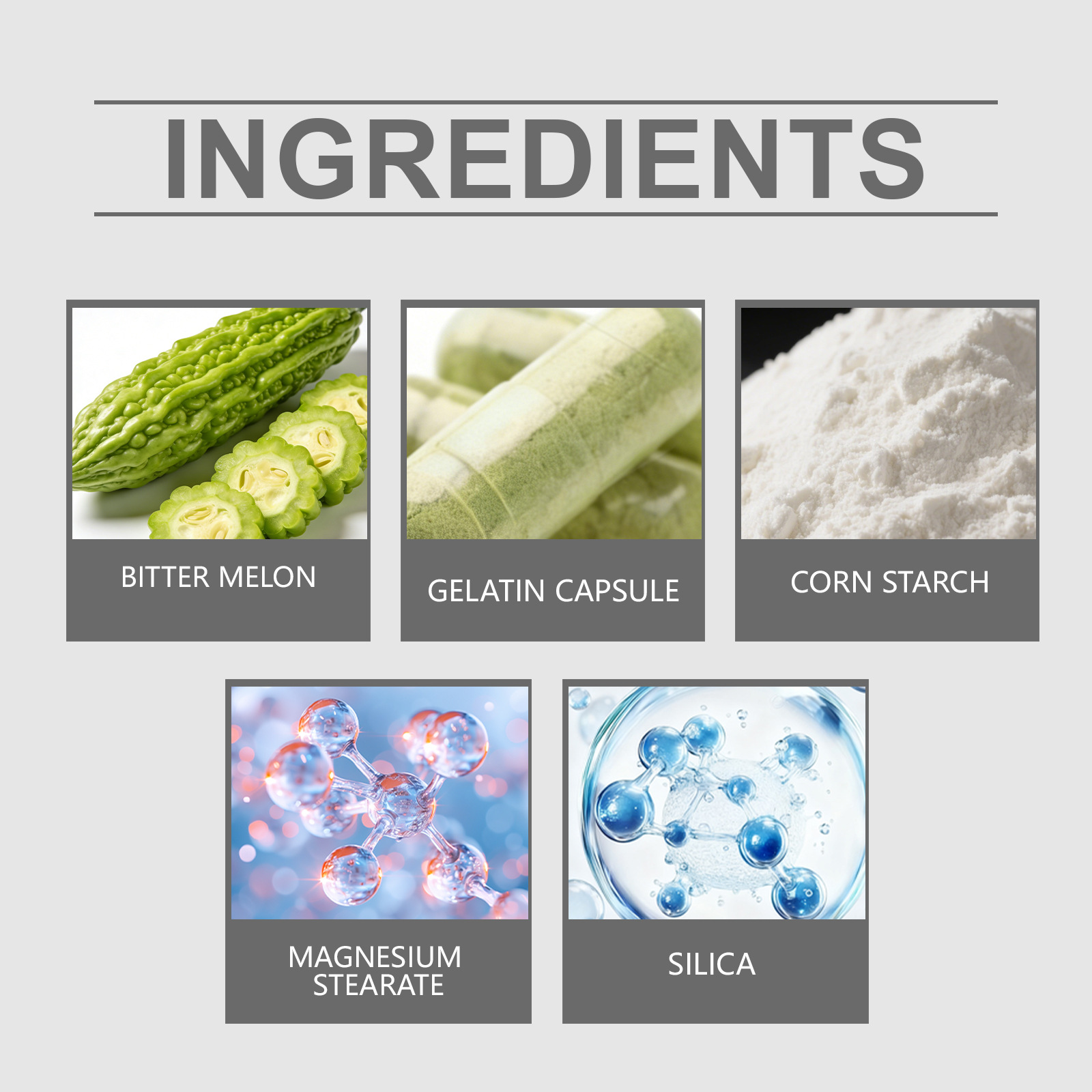 Other ingredients: gelatin capsule, corn starch, magnesium stearate, silicon dioxide.