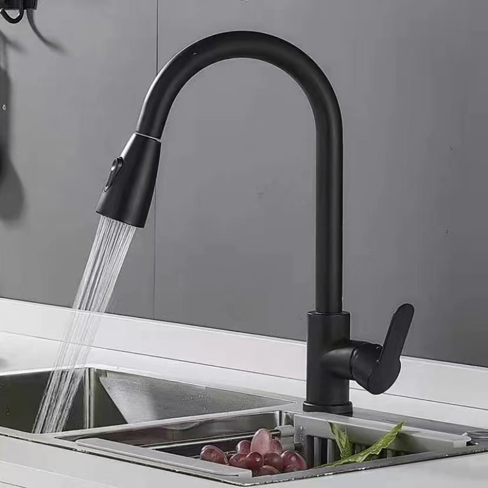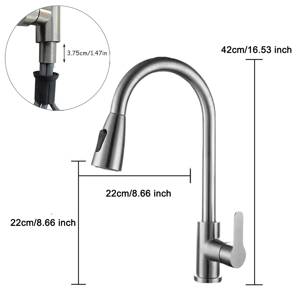 *Pull down sprayer with long hose can easily cove the entire sink.