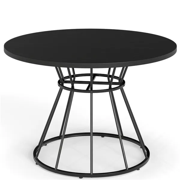 Black 47" Round Dining Table , Family-Sized For 4-6 People, Hourglass Metal Base & Curved Tabletop