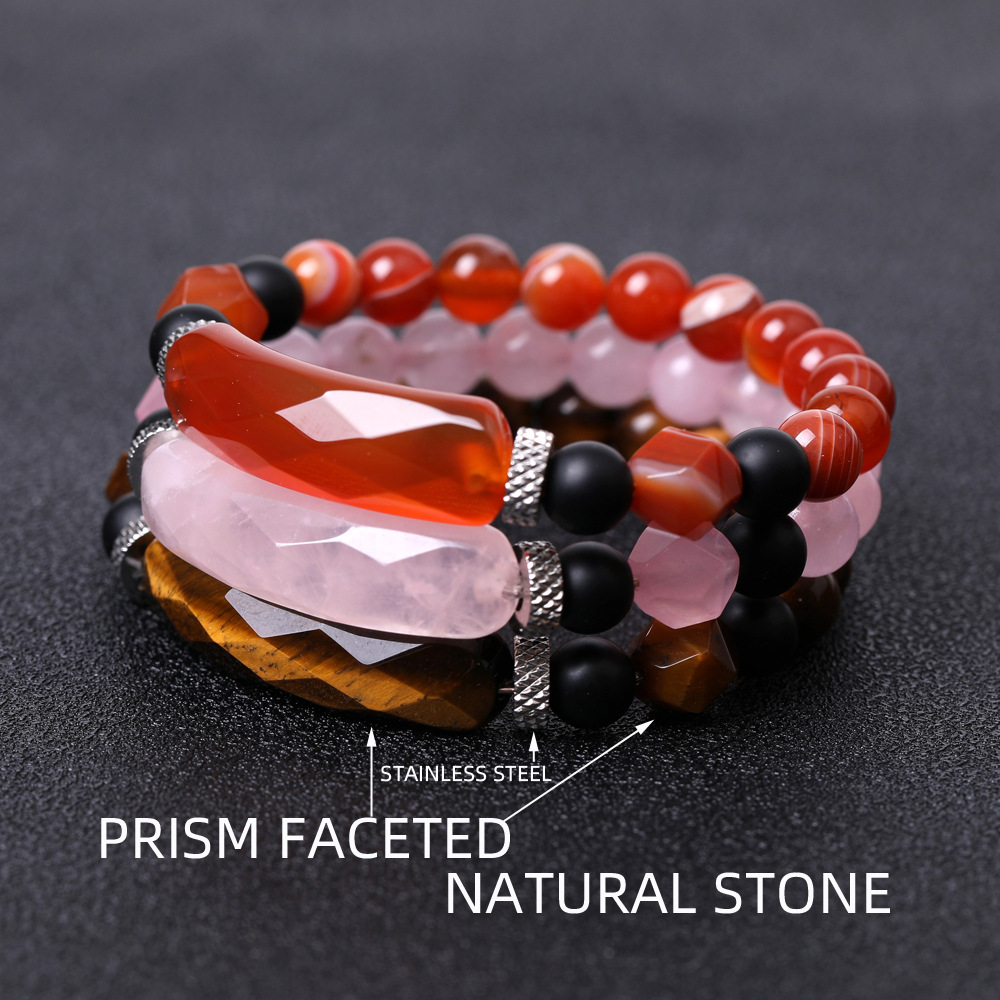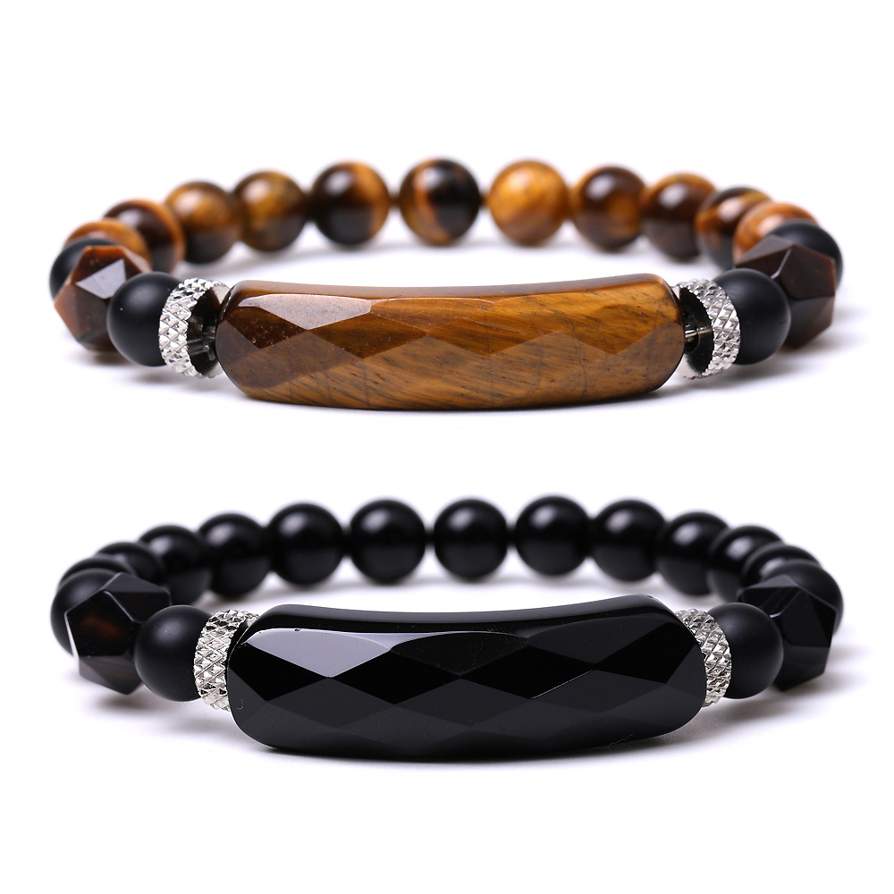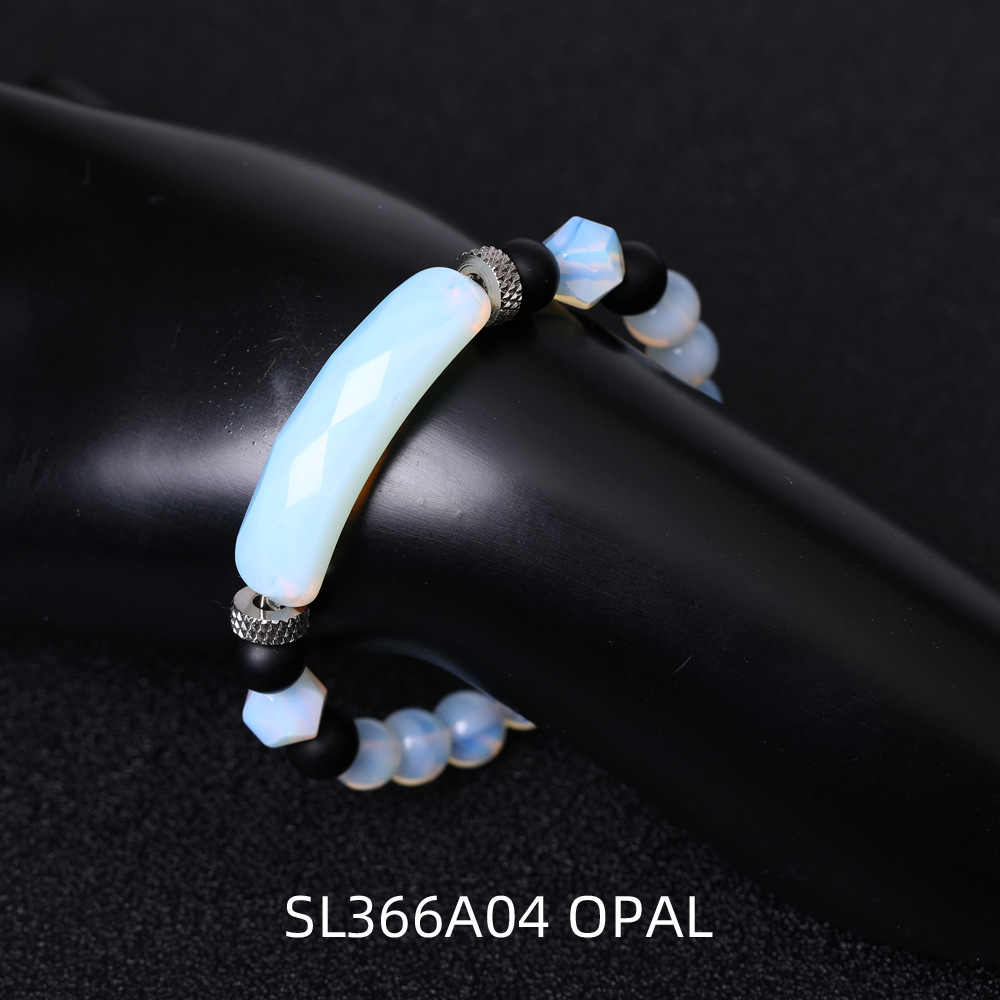 Color: SL366A01 cut black agate bracelet, SL366A02 cut striped red agate bracelet, SL366A03 cut old Topaz bracelet, SL366A04 cut opal bracelet, SL366A05 cut green evergreen bracelet, SL366A06 cut surface Tigereye bracelet, SL366A07 cutting surface pink crystal bracelet, SL366A08 cutting surface white dot blue bracelet