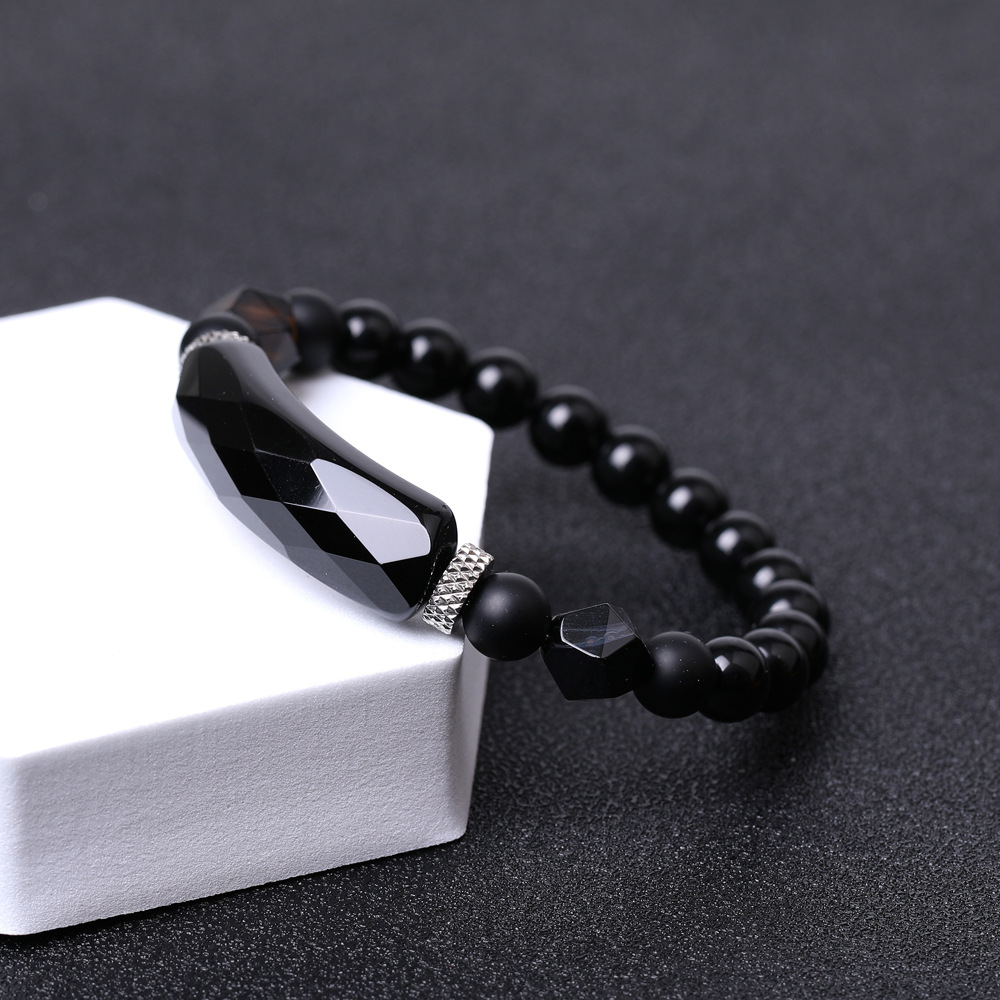 Black Agate Diamond-shaped Cut Bracelet For Women