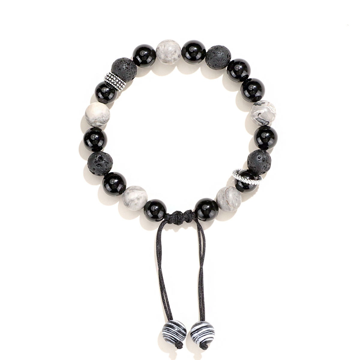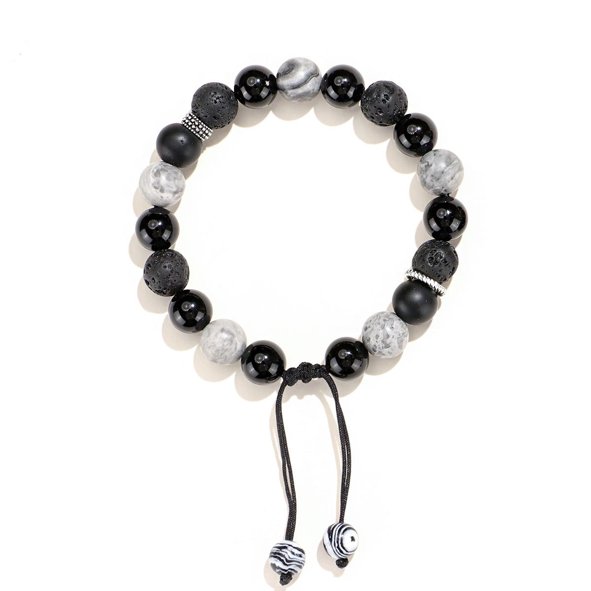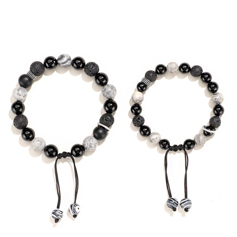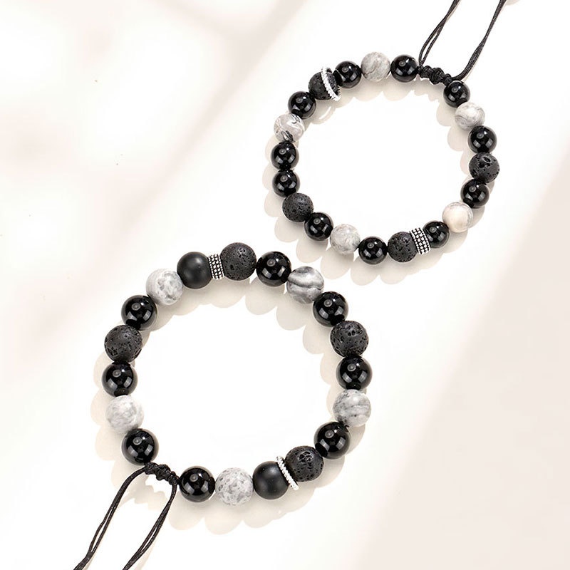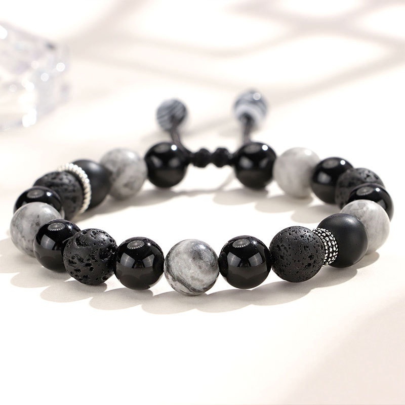 Color: 8mm black agate map stone volcanic bracelet for women, 10mm black agate map stone volcanic bracelet for men