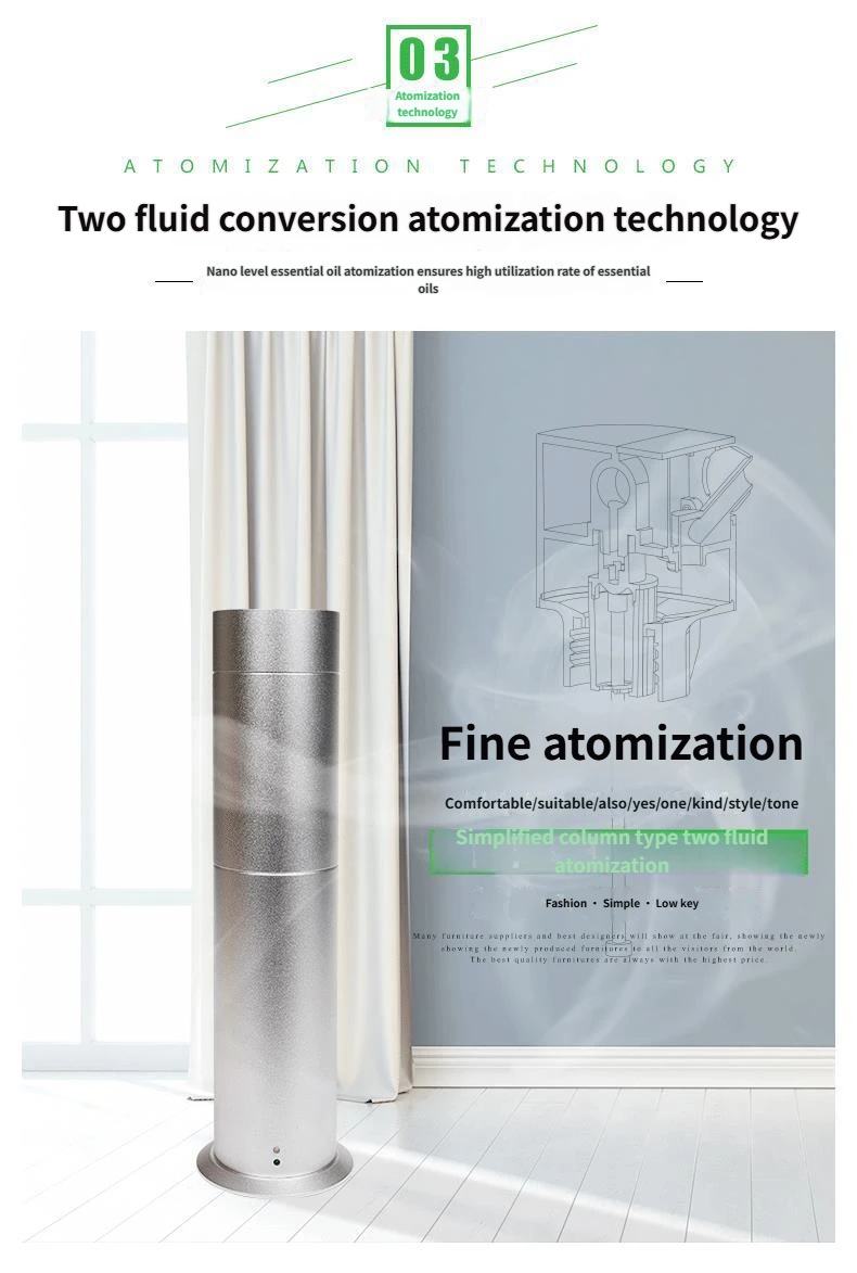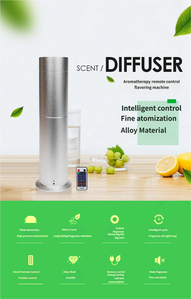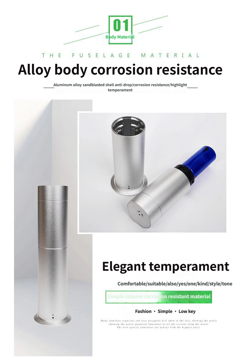 This sleek black aroma diffuser is a professional remote control cylindrical scent machine, specially designed for hotel fragrance and small space aromatherapy needs. Crafted with aluminum alloy shell and plastic inner tank, it features automatic working mode and 1 fog outlet, delivering even and delicate fragrance coverage for 1-40 square meters of space. Equipped with practical water shortage power-off protection, it ensures safe and worry-free use, while the DC12V low-voltage design and 5W low power consumption make it energy-efficient and durable. With a compact size of φ8.5φ6.5H28.5cm and light weight of only 0.9kg, it’s easy to install and place in hotels, lobbies, offices and other small areas, creating a pleasant and elegant fragrance environment effortlessly.