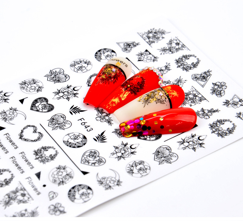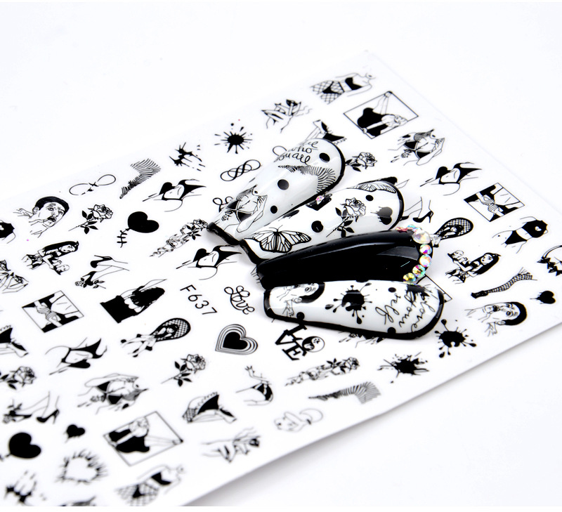 Product informationMaterial: photo paperColor: black and whiteSpecification: Strap Glue SheetPacking listNail Sticker x1
