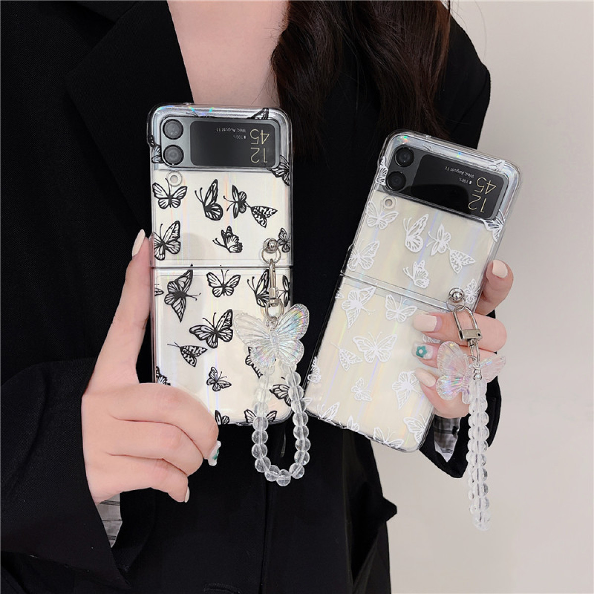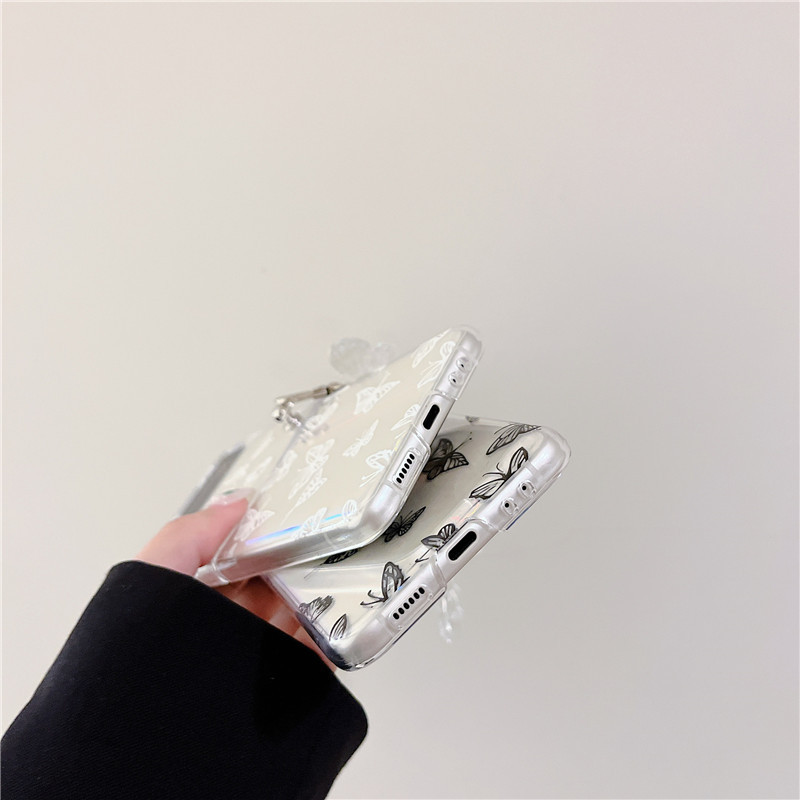 Color: black butterfly mobile phone case, white butterfly mobile phone case, black butterfly mobile phone case+chain, white butterfly mobile phone case+chain