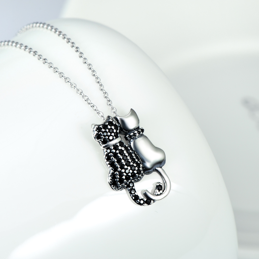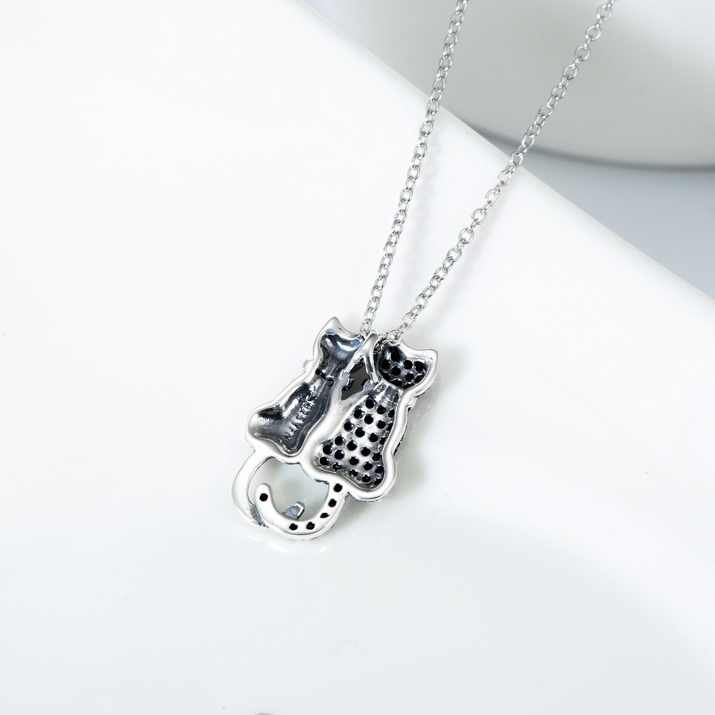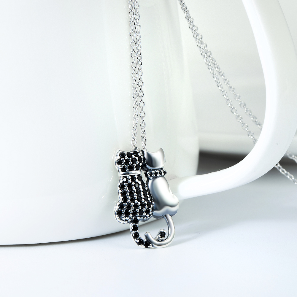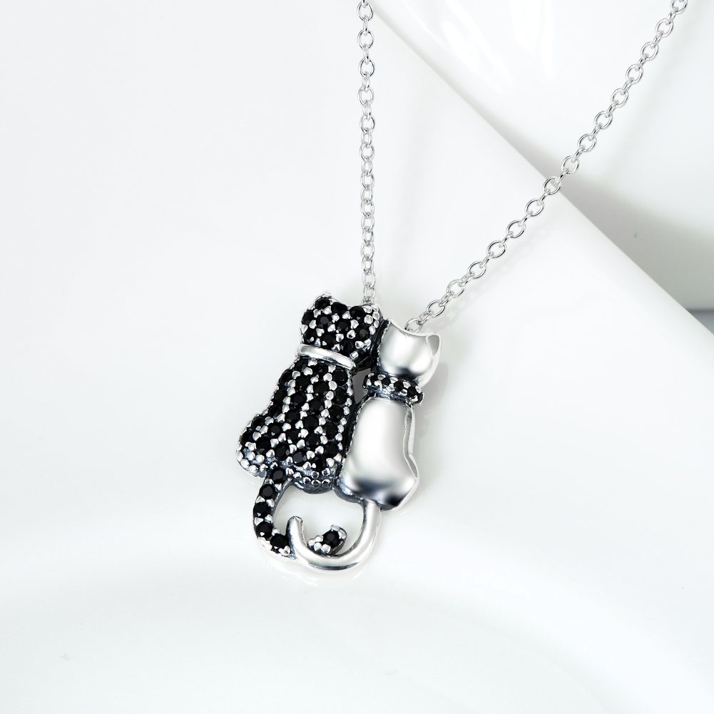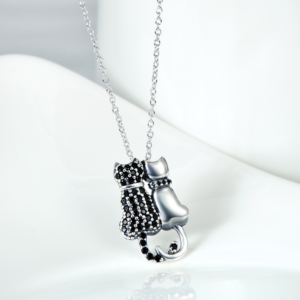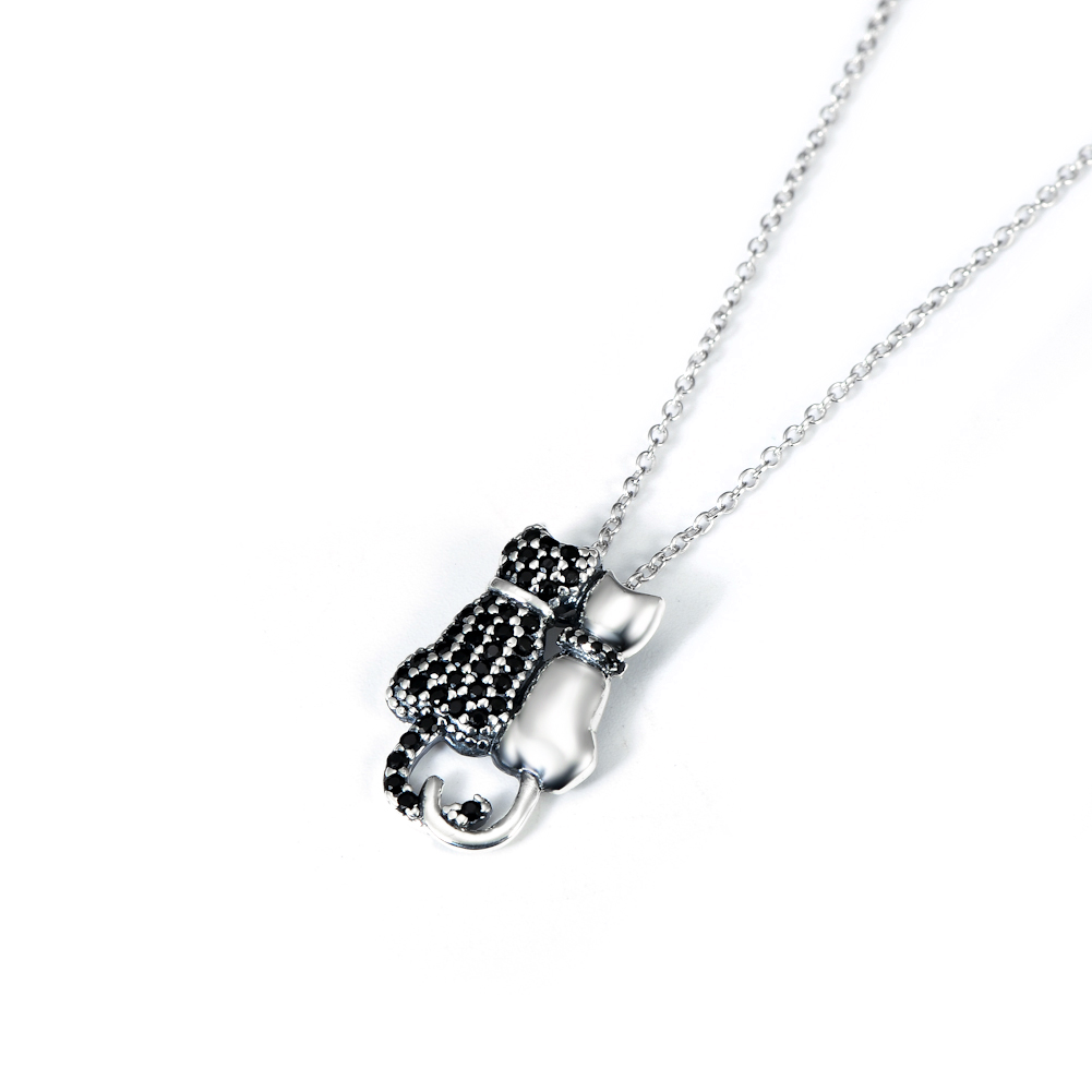Black And White Cat Necklace With Diamonds