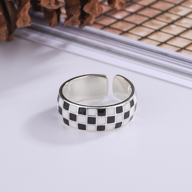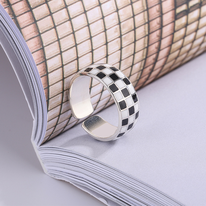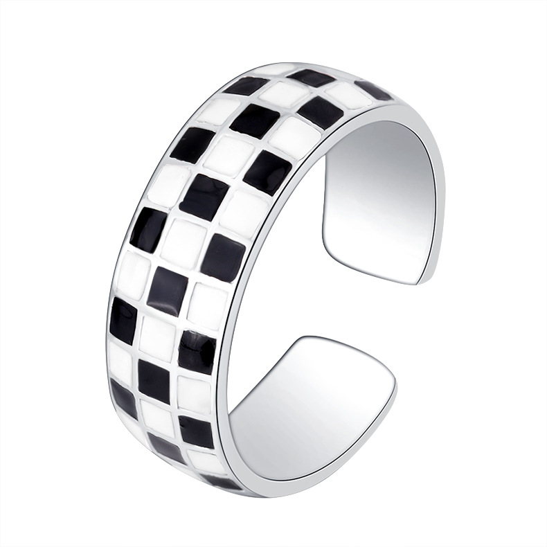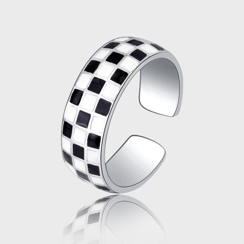 Black And White Checkerboard Design Middle Finger Wide Face Ring