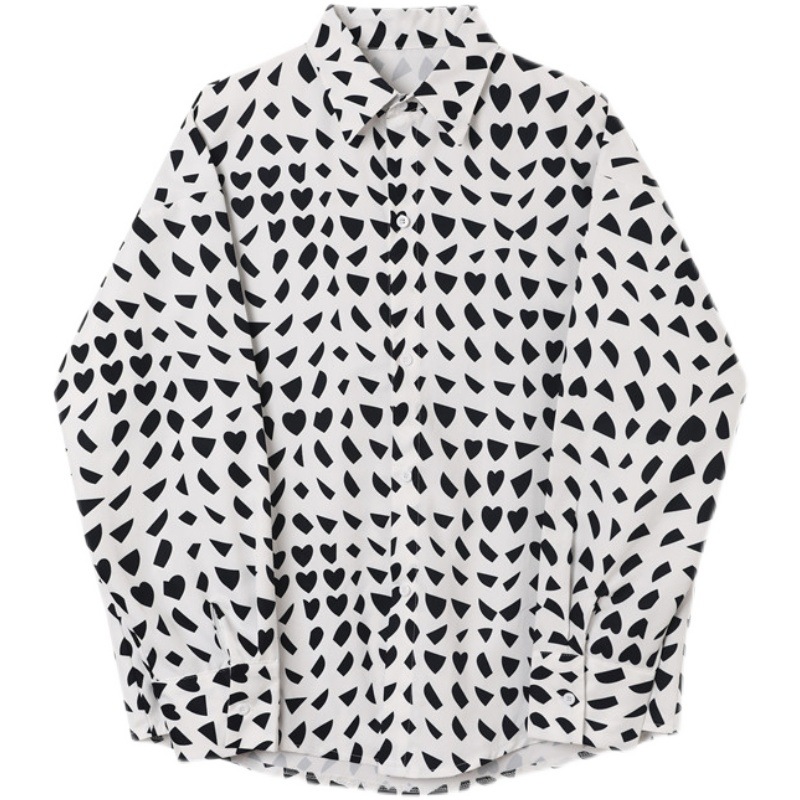 Black And White Collision Geometric Pattern Printed Long-sleeved Shirt Men
