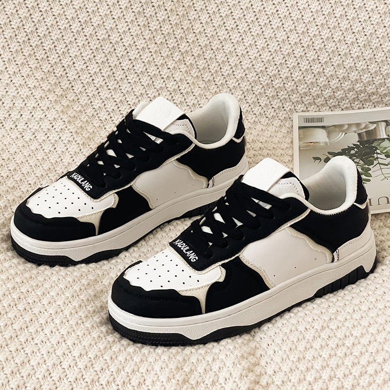 Black And White Color Contrast Panda Shoes China-Chic Thick Soled Lovers Sneakers