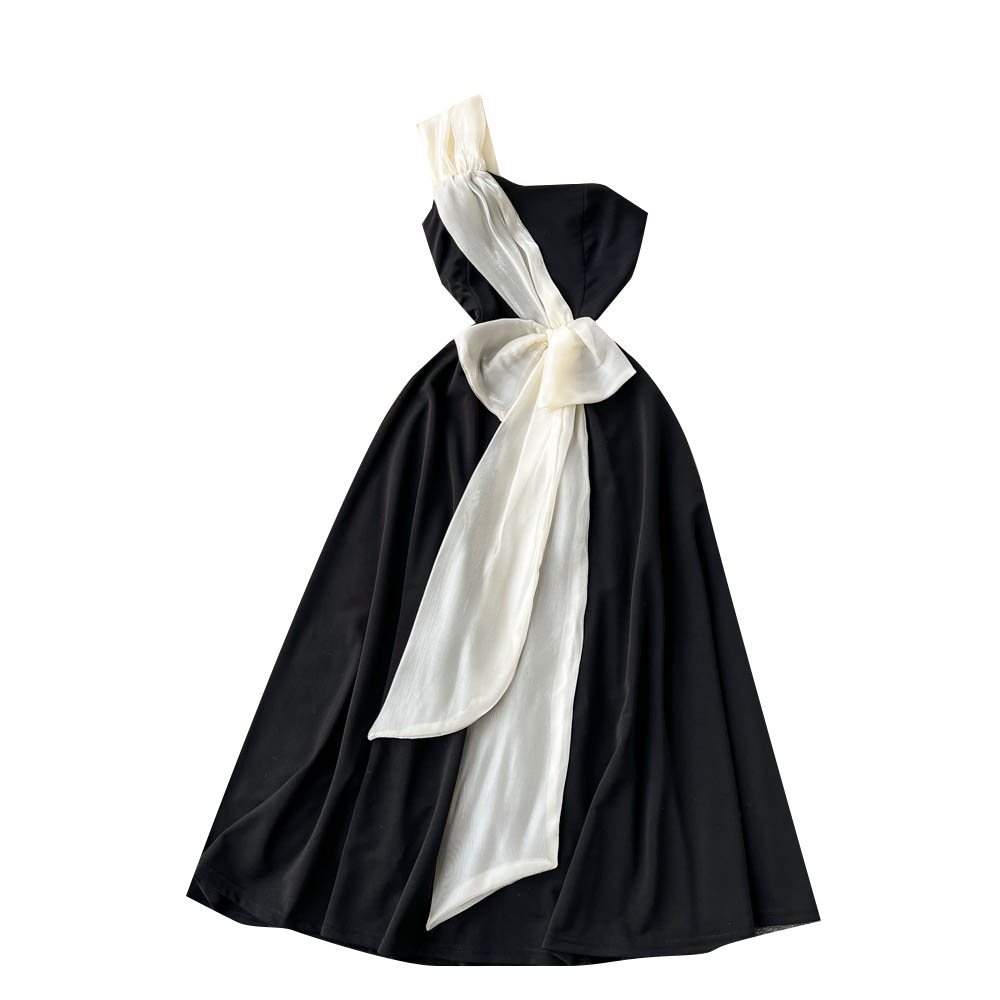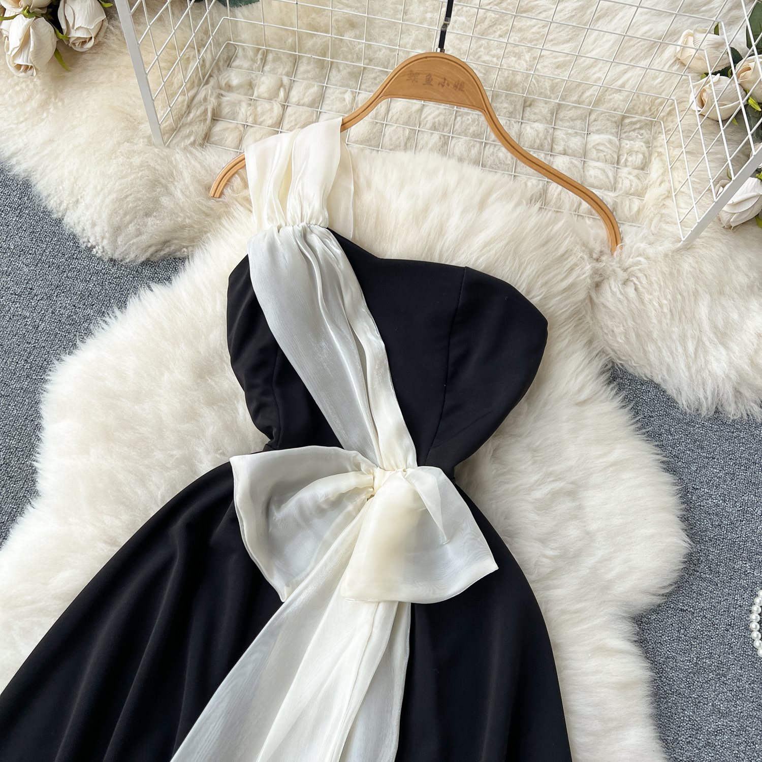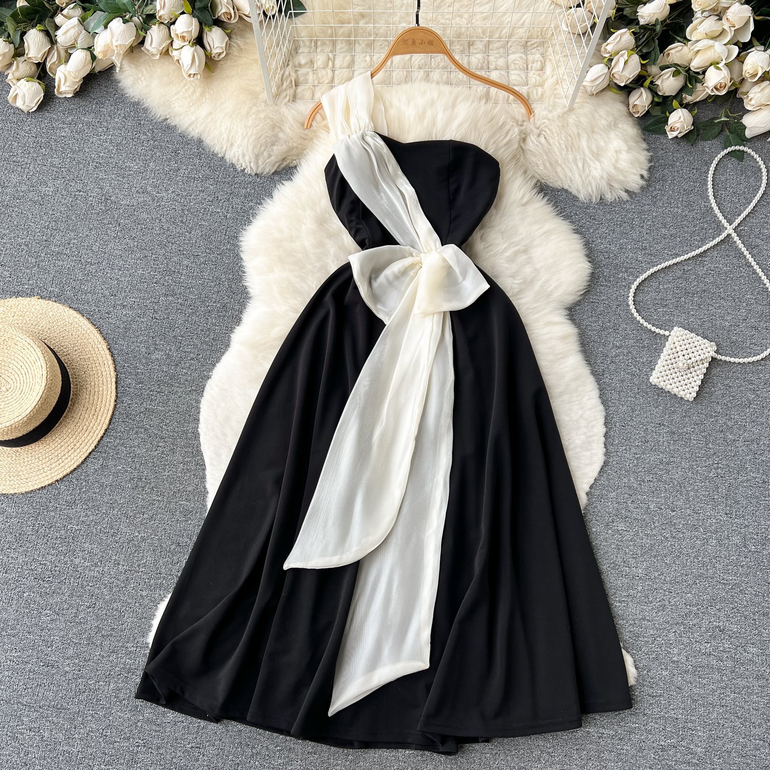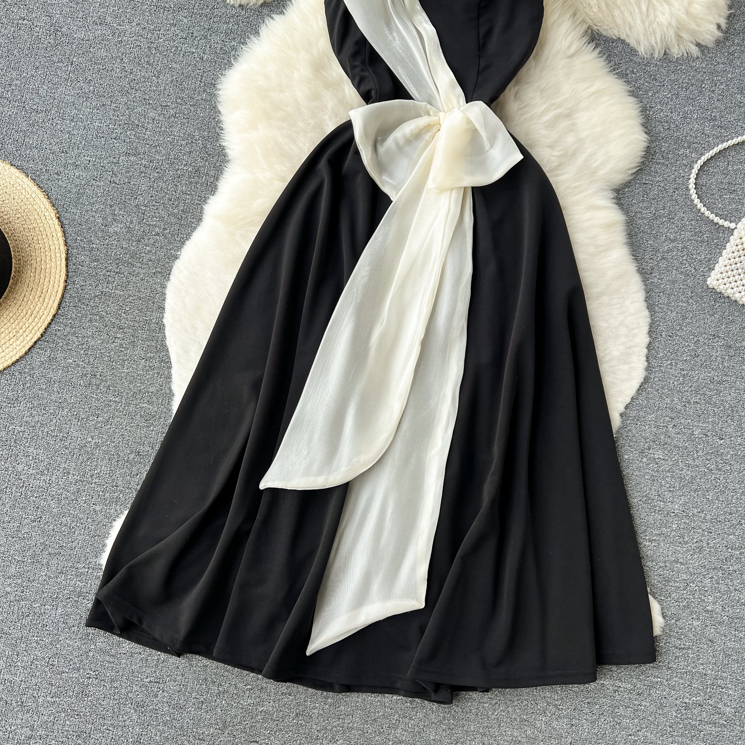 Black And White Contrast Color Slim Fit Waist A- Line Princess Dress