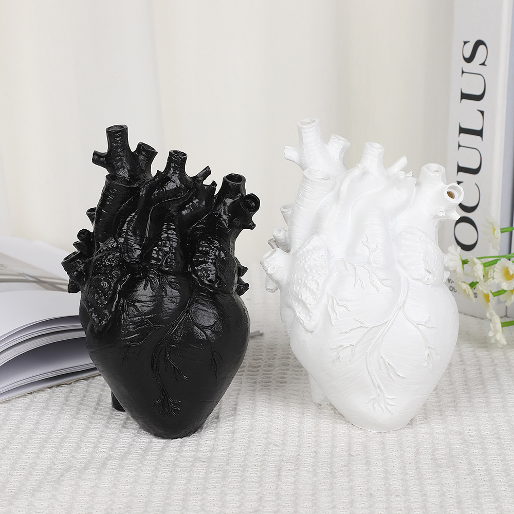 Black And White Heart Vase, Creative Heart-shaped Vase, Home Desk Decoration, Resin Crafts, Great Deal