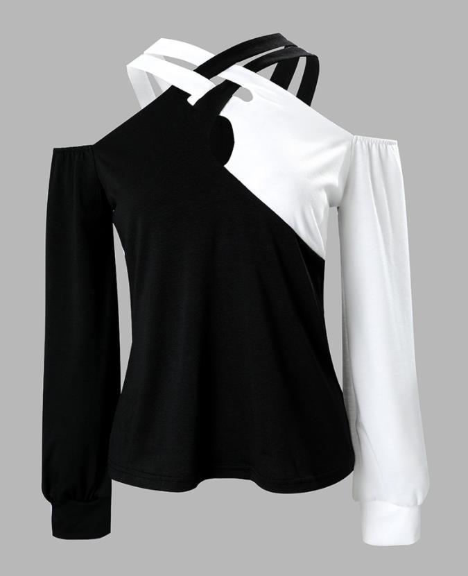 Black And White Patchwork Casual Fashion Cross Belt Women's Top