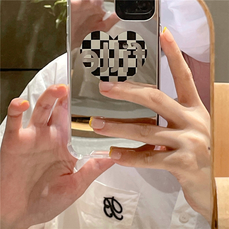Color: fille black border plaid love heart-mirror