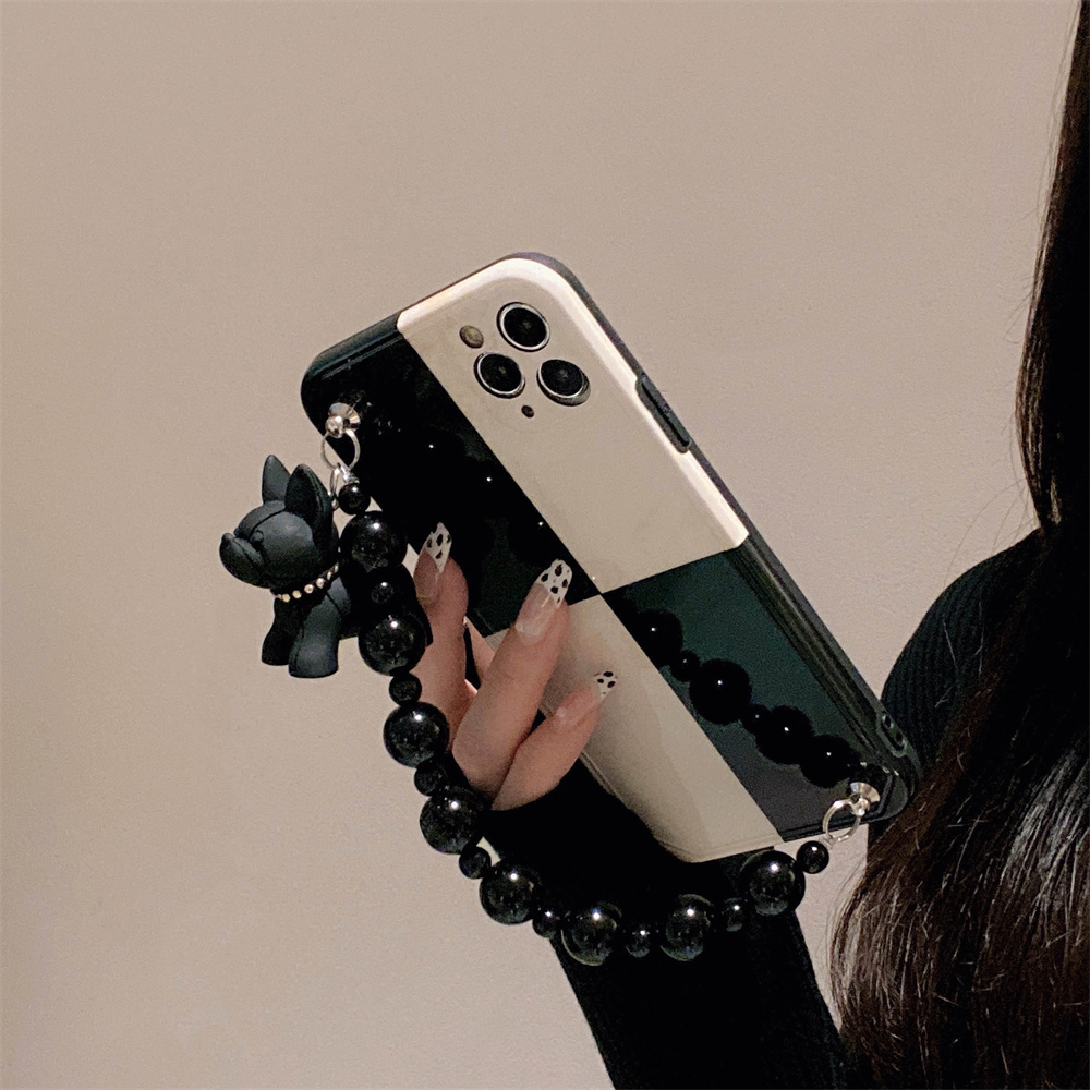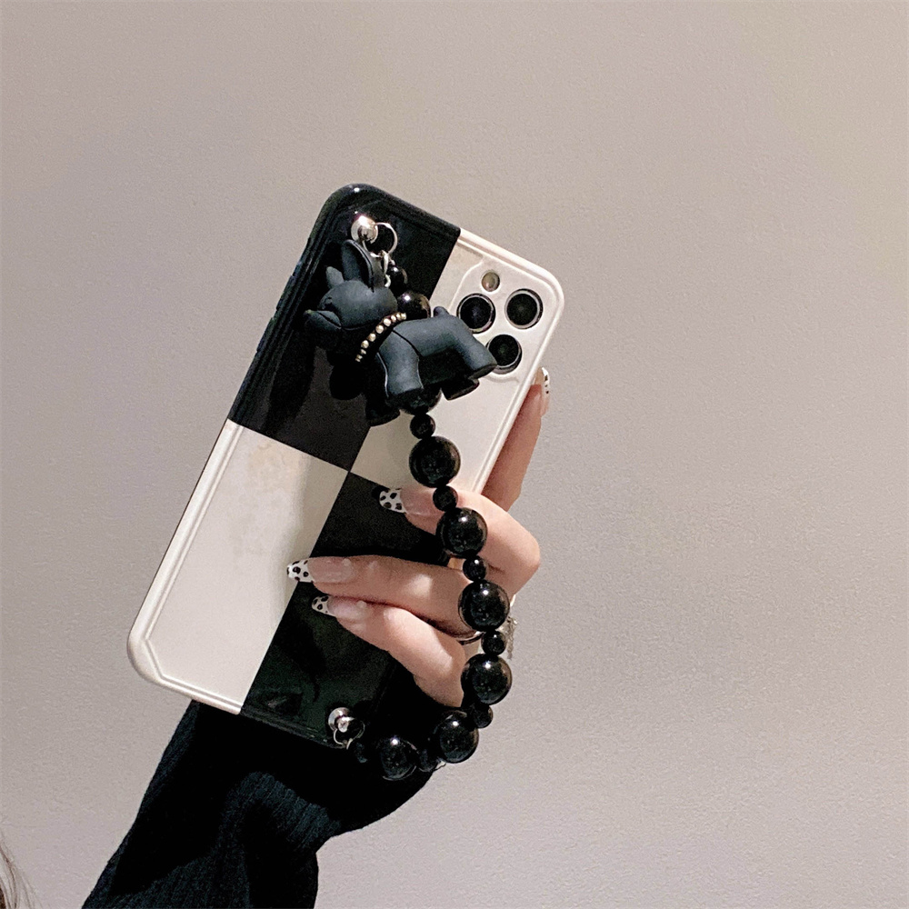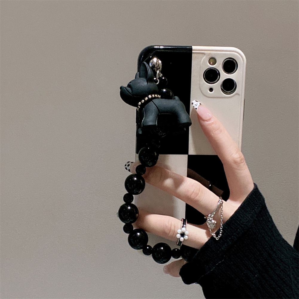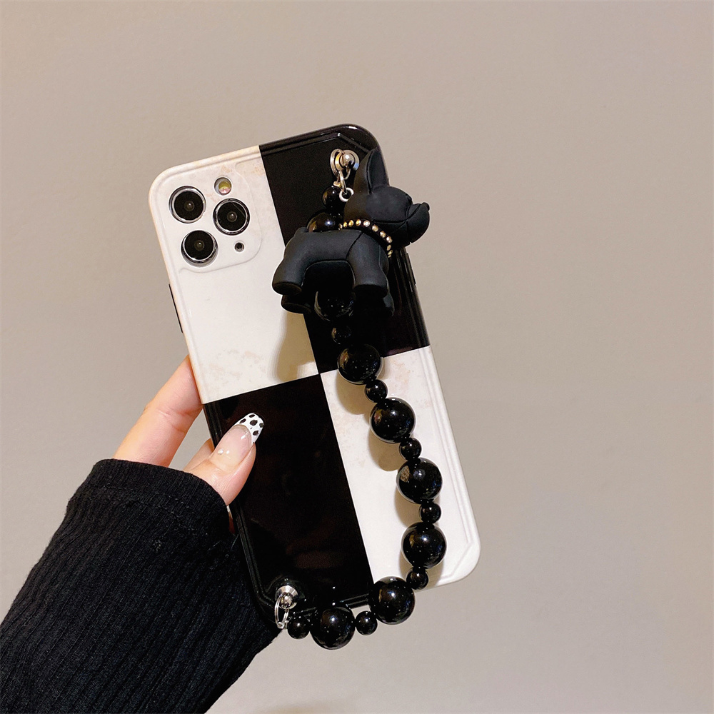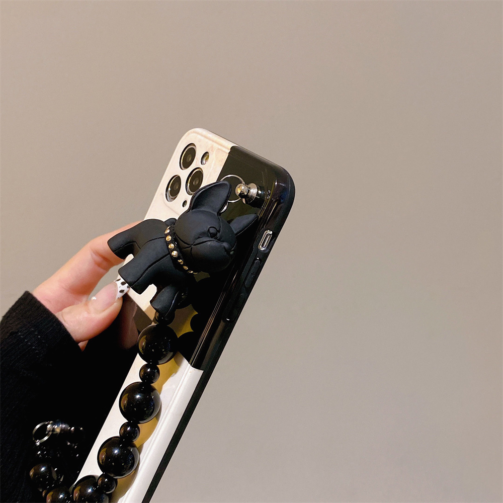 Black And White Retro Bulldog Silicone Drop-resistant Phone Case