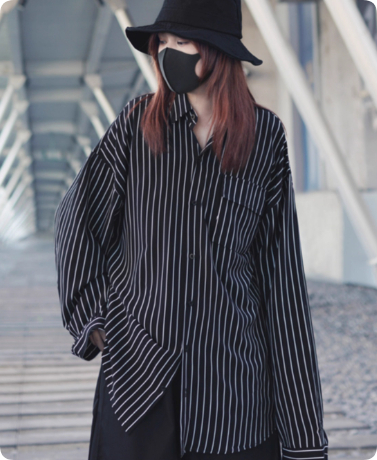 Black And White Striped Loose Long-sleeved Thin Shirt