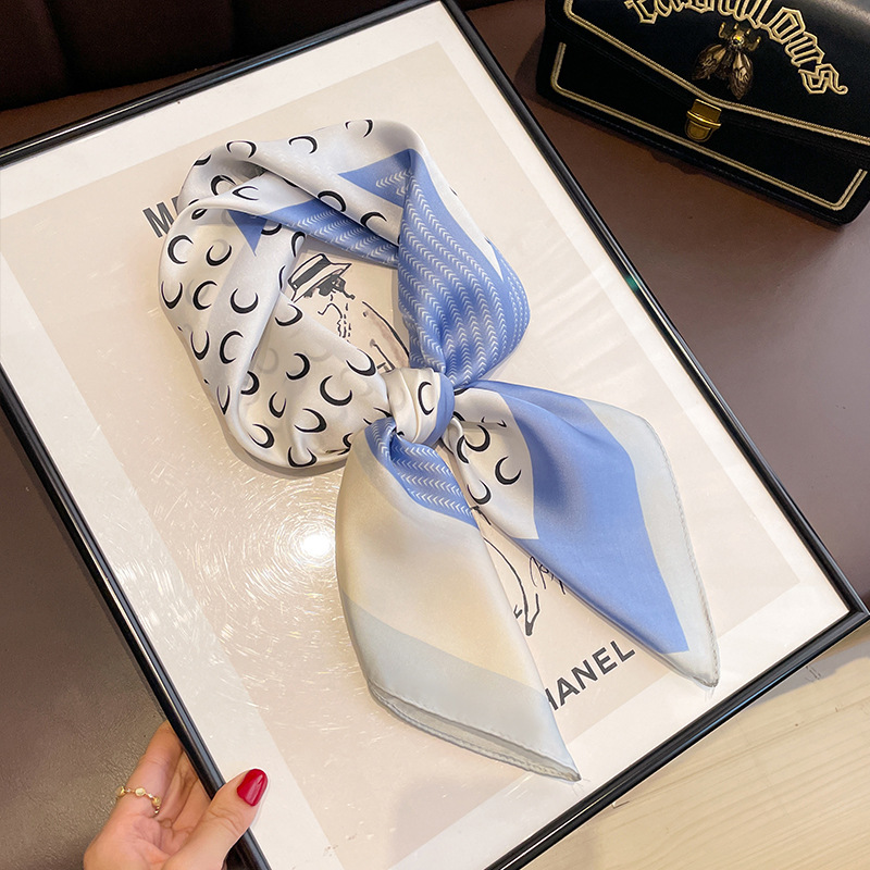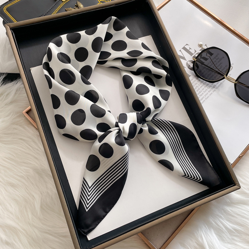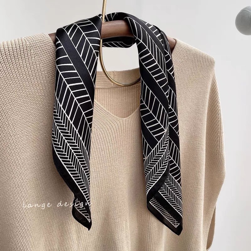 Black And White Striped Small Square Towel Silk Scarf Women's Headscarf Spring And Autumn