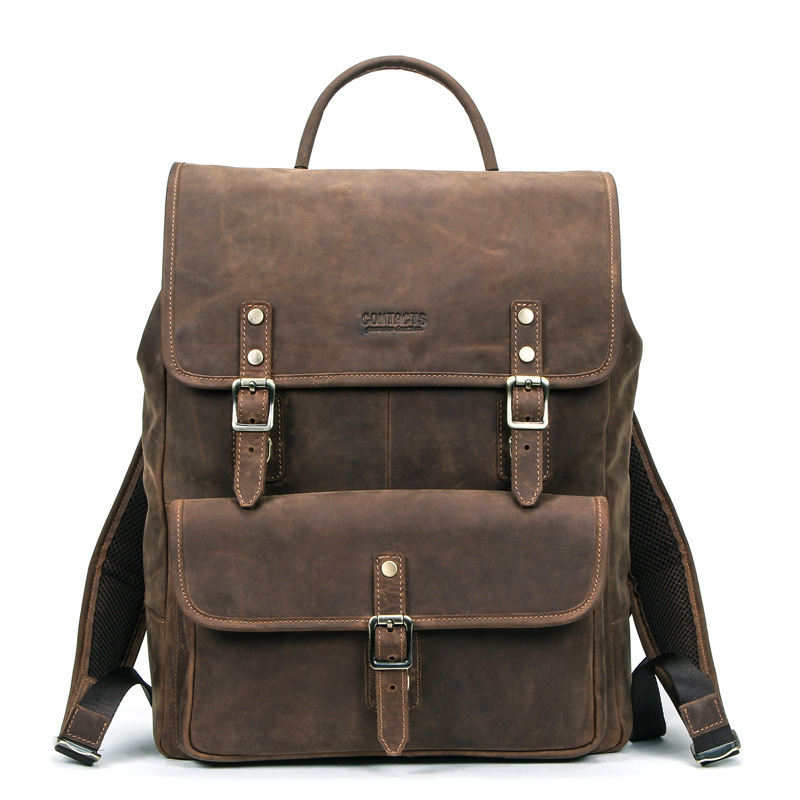 Black Angel Retro Crazy Horse Leather Men's Backpack