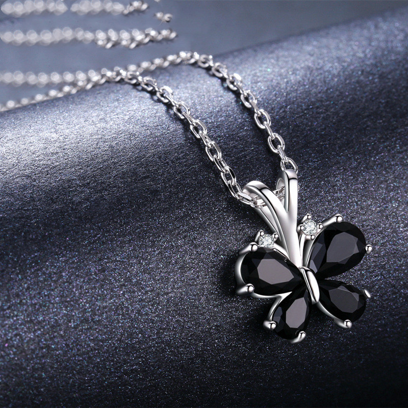 Black AwnS 925 Sterling Silver Necklace Butterfly