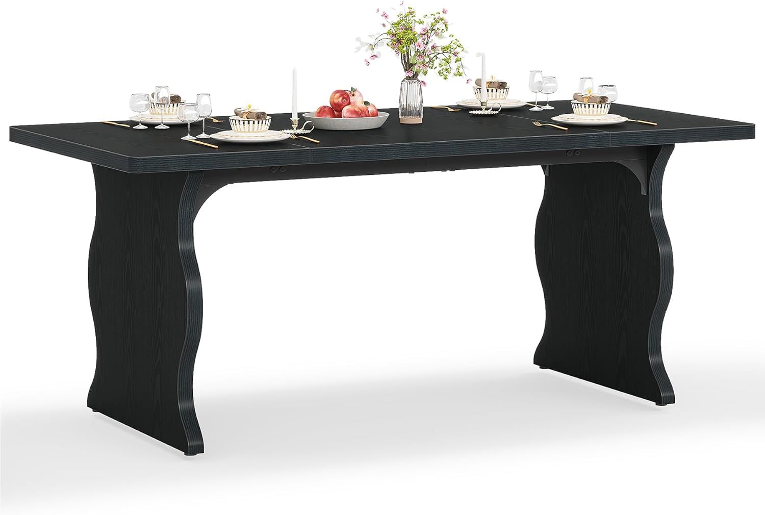 ������������ ������������������������: Made from thickened MDF, this 63-inch rectangle wooden dining room table is super reliable, sturdy, and scratch-resistant. The adjustable leg pads are added to keep the rectangular dinner table standing stable on uneven floors