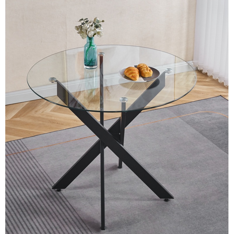 Product Name:Black Dining Table with cross metal leg and tempered glass,Modern Space Saving Kitchen Table for Living Room