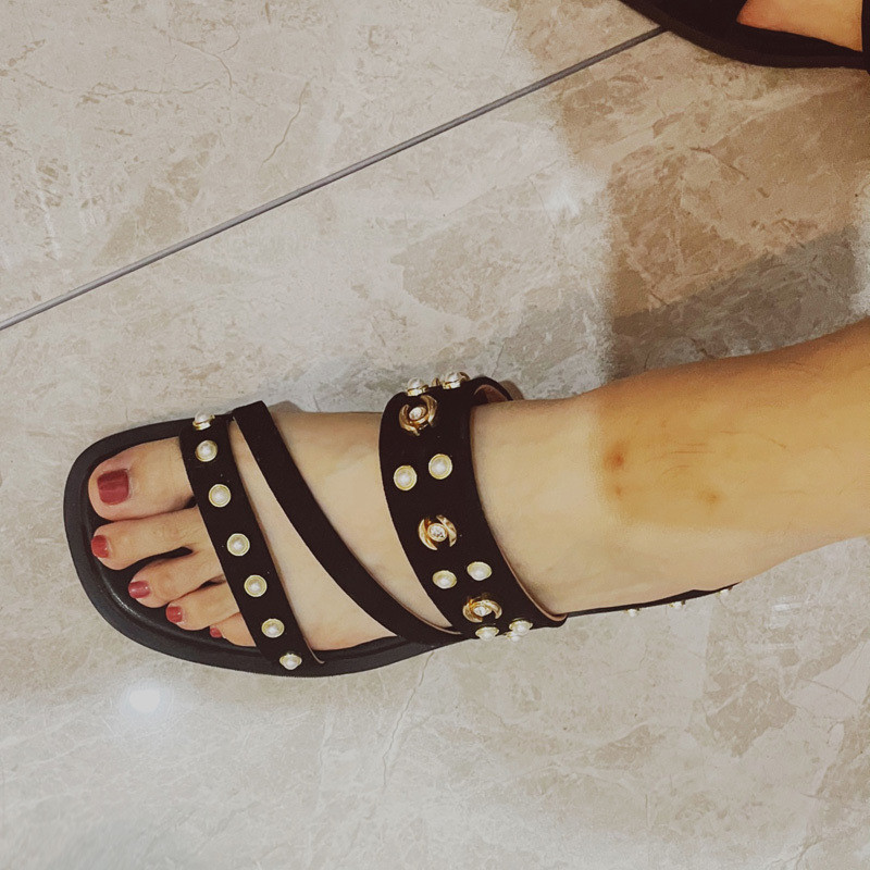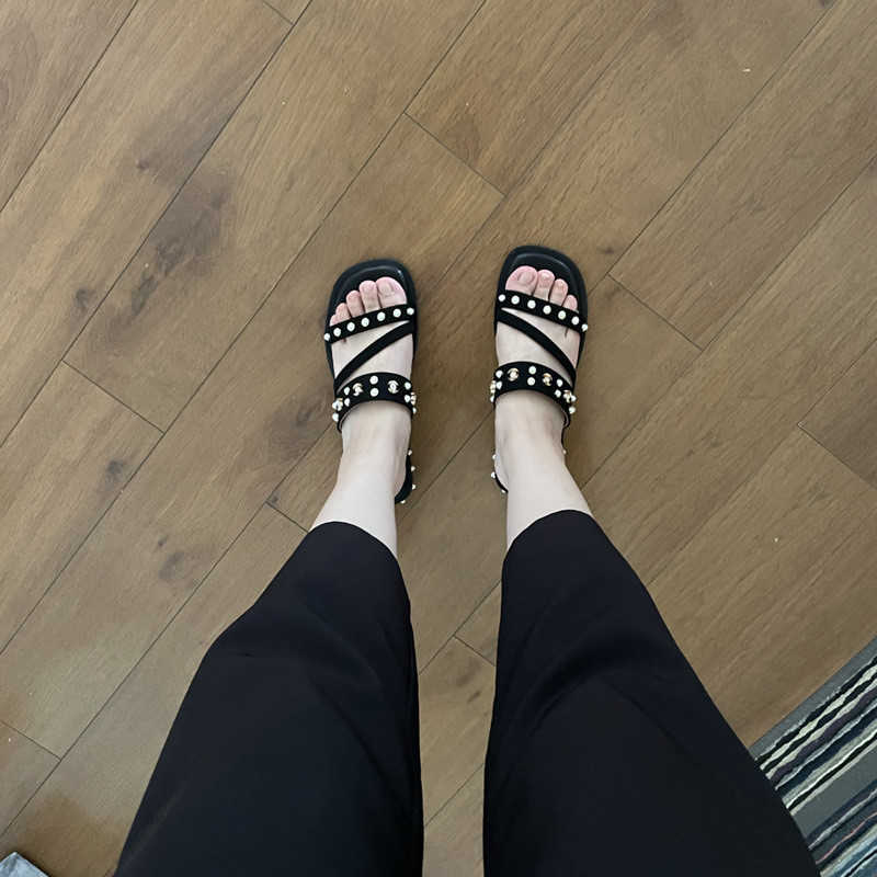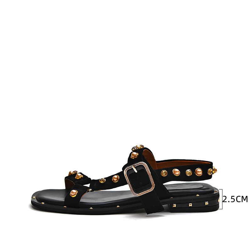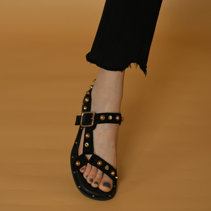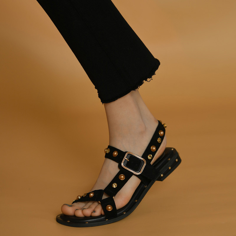 Black Flat Orange Roman Holiday Style Women's Sandals