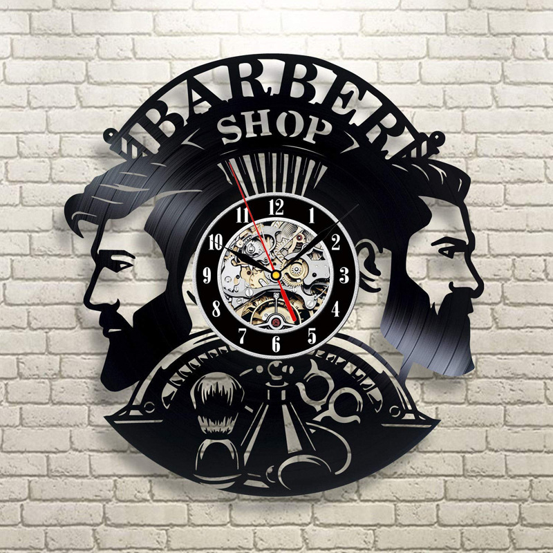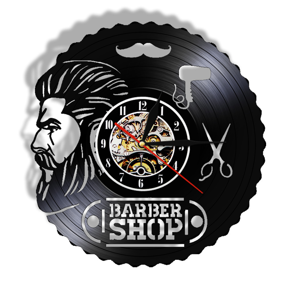 Black Gum Wall Clock Barber Gentleman Beard Vinyl