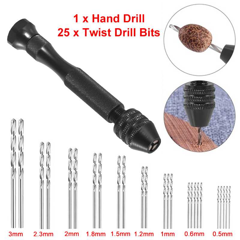 -Mini wood hand drill chuck for jewelry tool micro twist bit.