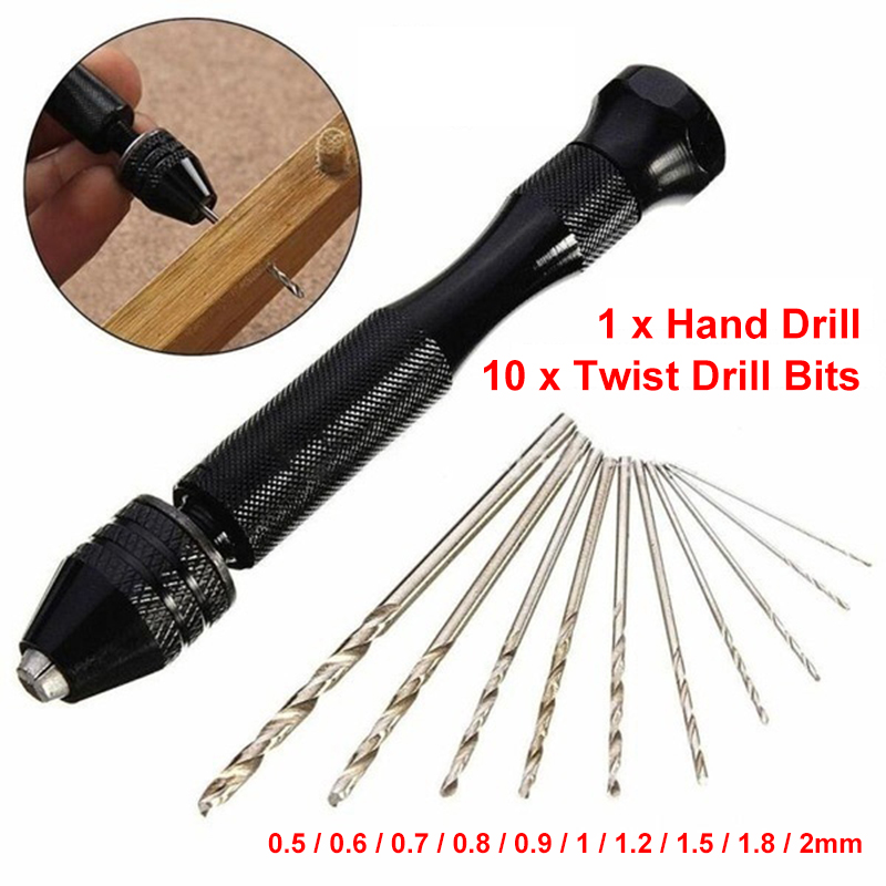 Drillpro Mini Aluminum Hand Drill with Keyless Chuck and 10 Twist Drills Rotary Tool