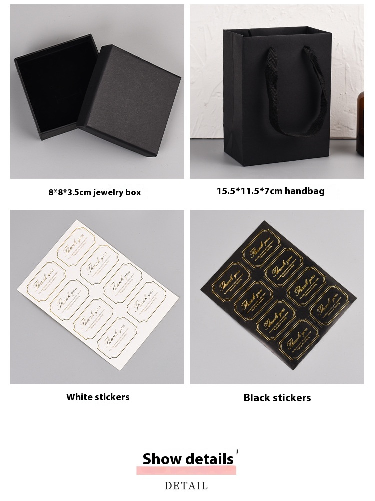 Color: Jewelry Box 8*3.5cm, handbag 15.5*11.5 * 7cm, sticker Black, sticker White