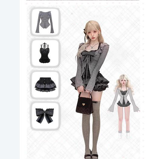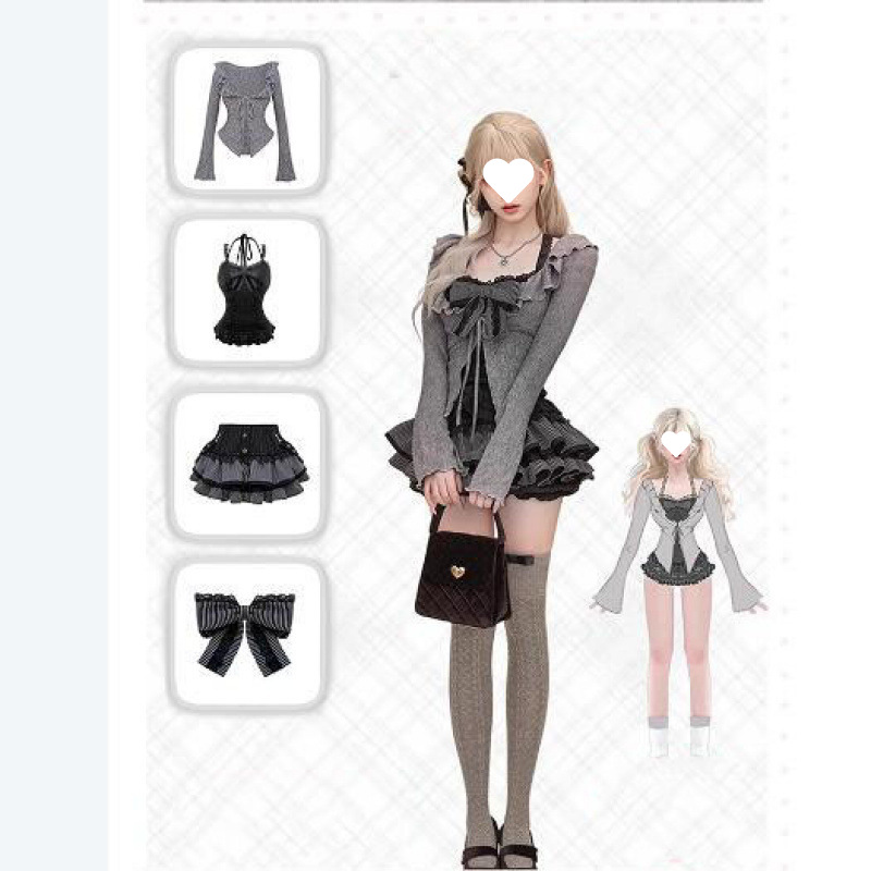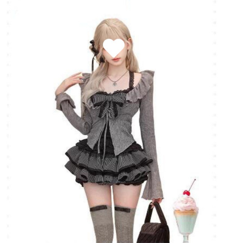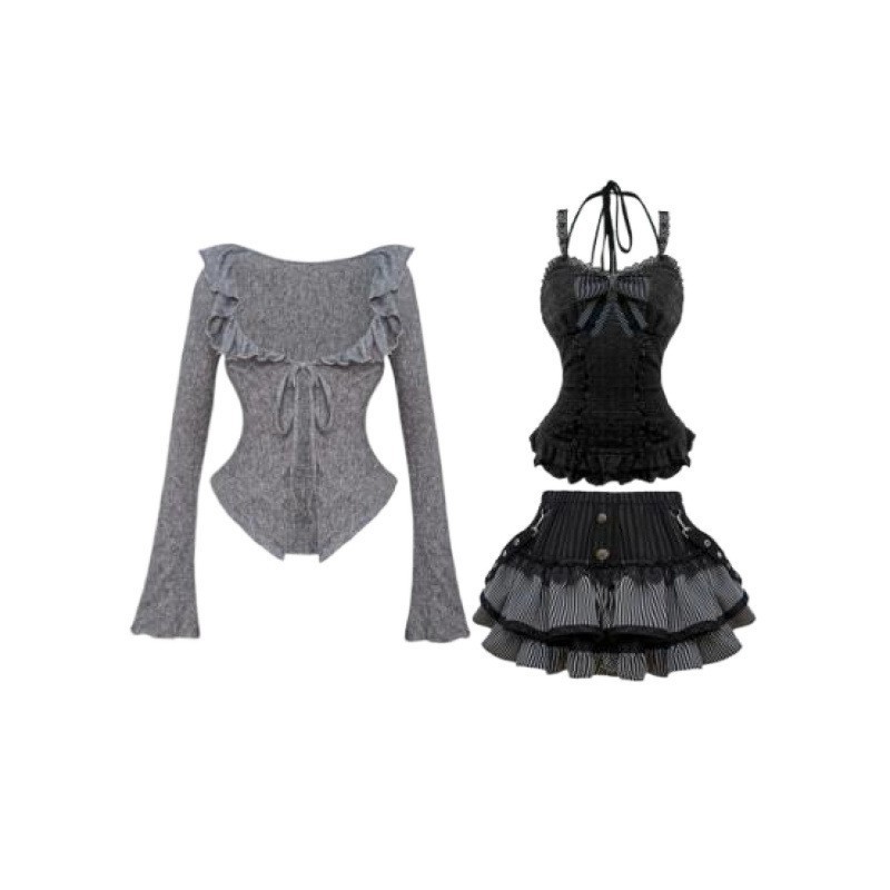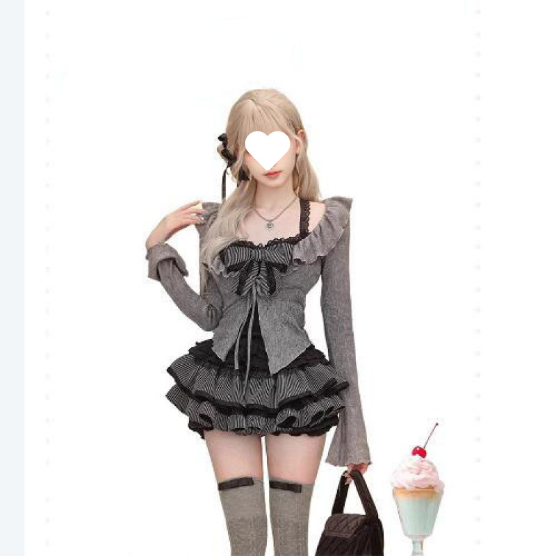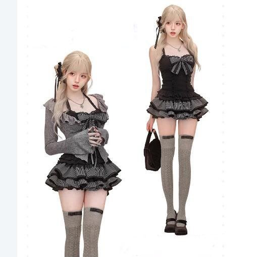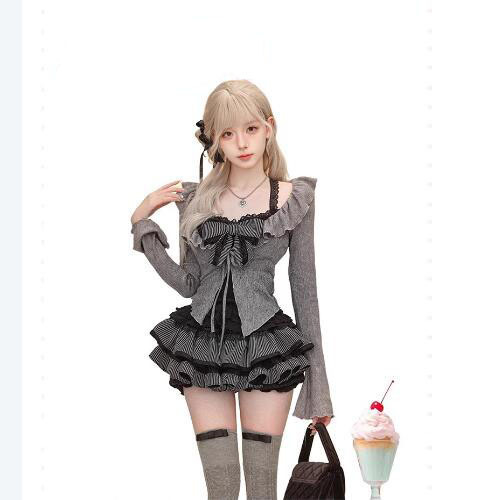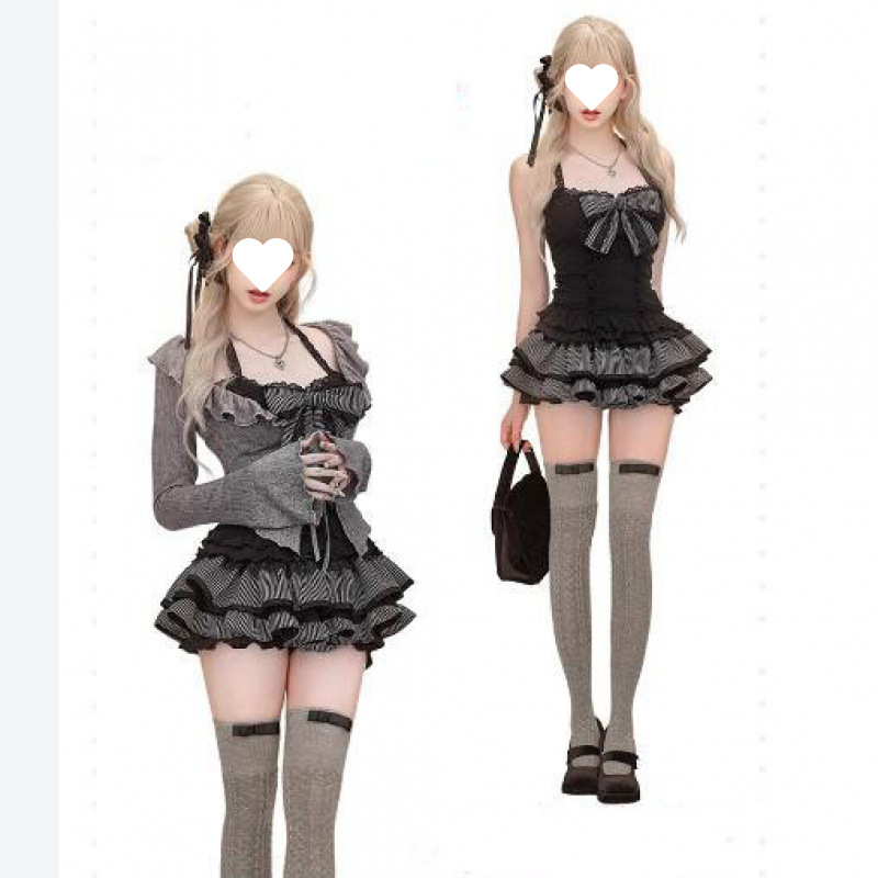 Color: Cardigan suspender skirt [three-piece set]]
