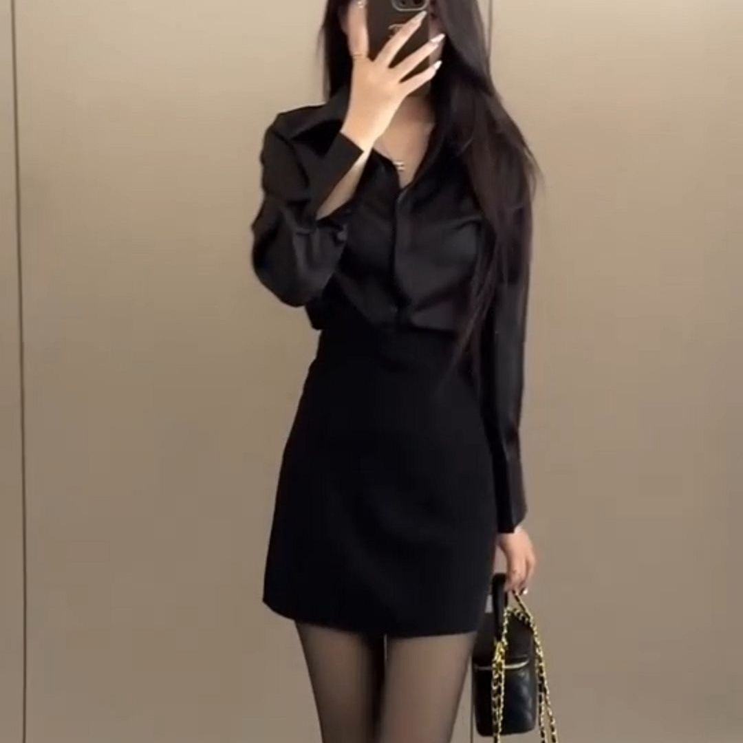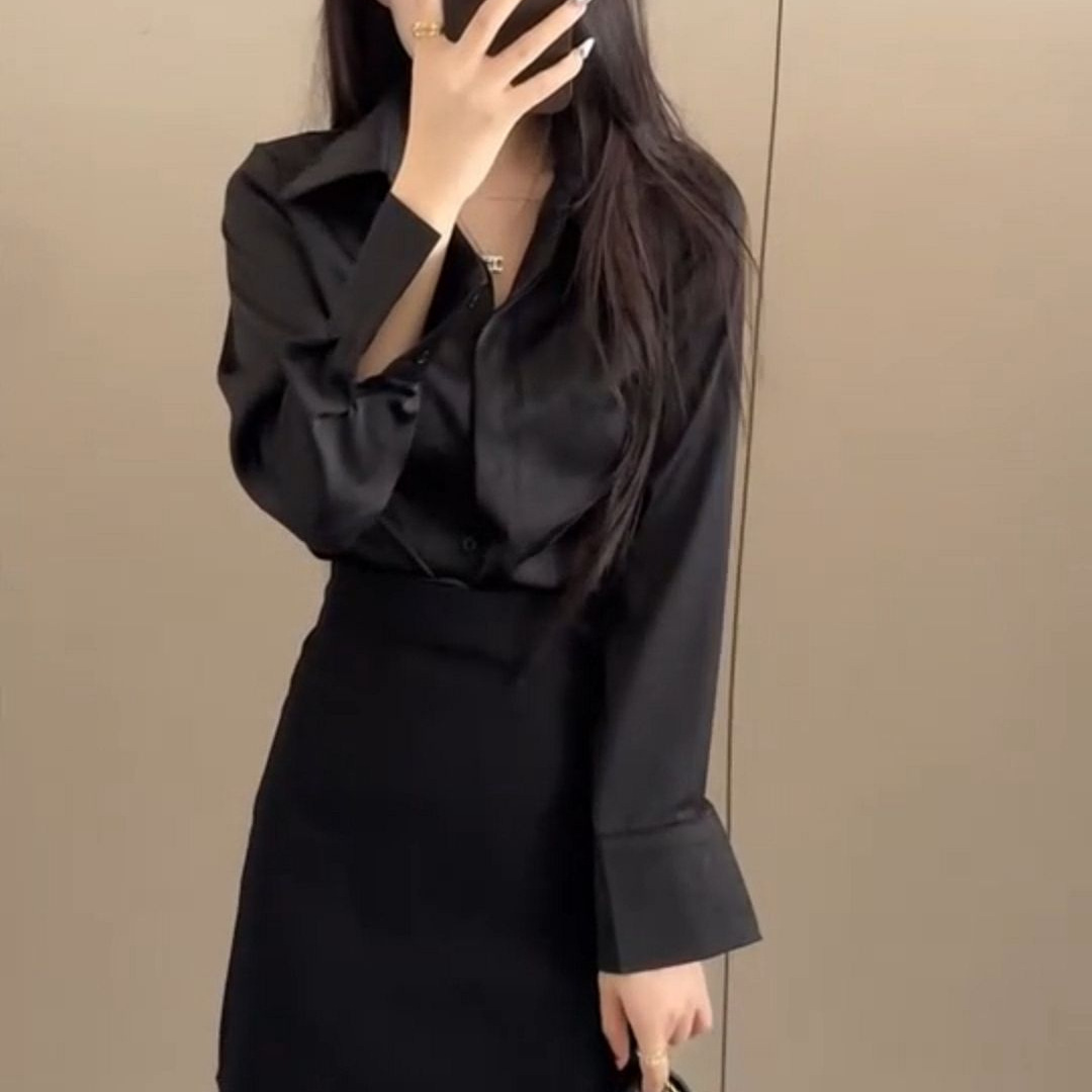 Black Light-luxury Shirt And Femme Fatale-style Skirt Set