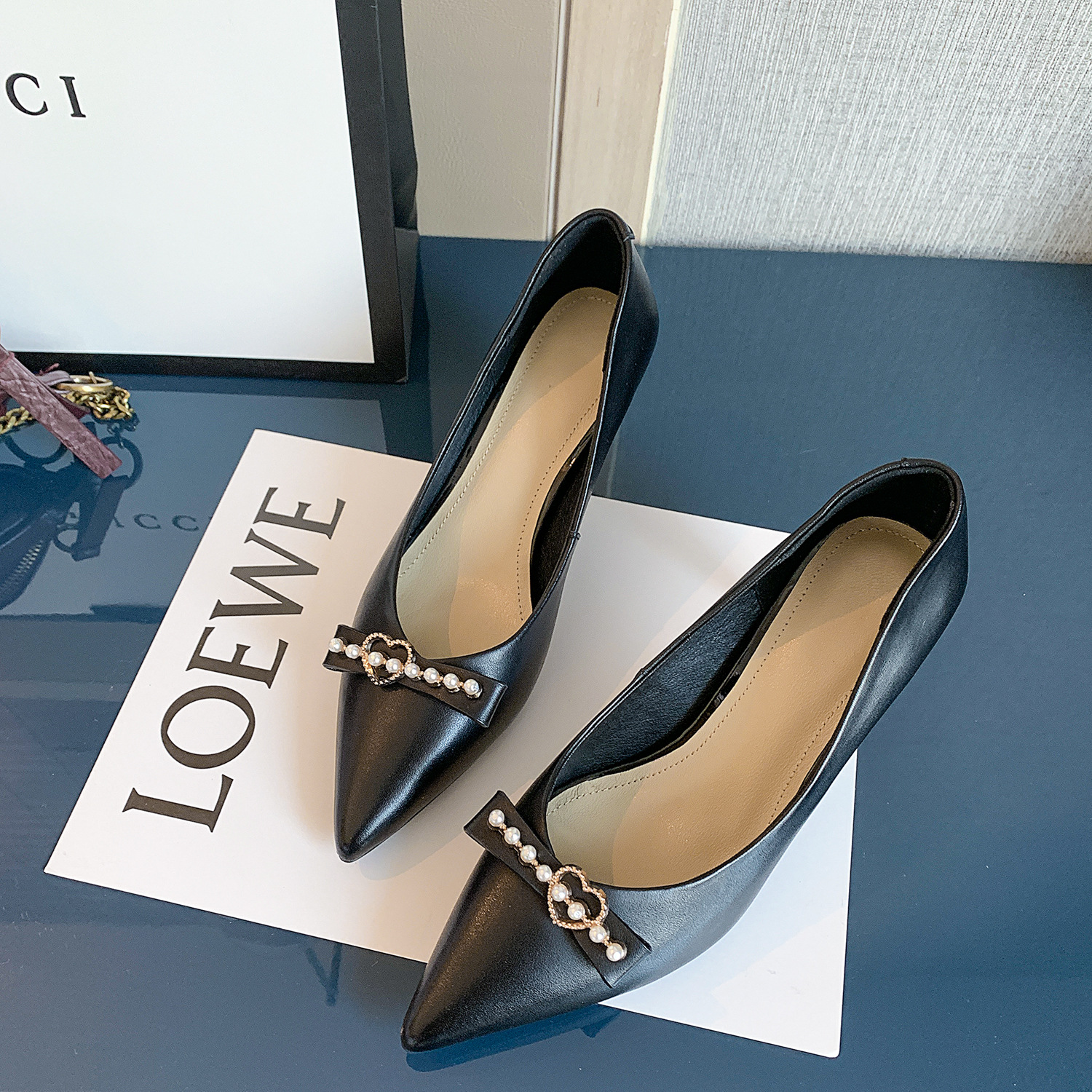 Black Low-top High Heels Cowhide Fashion
