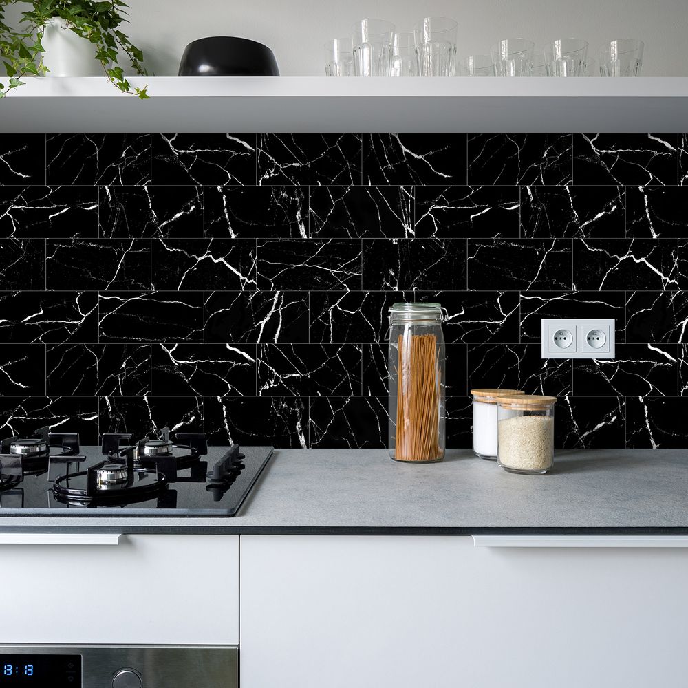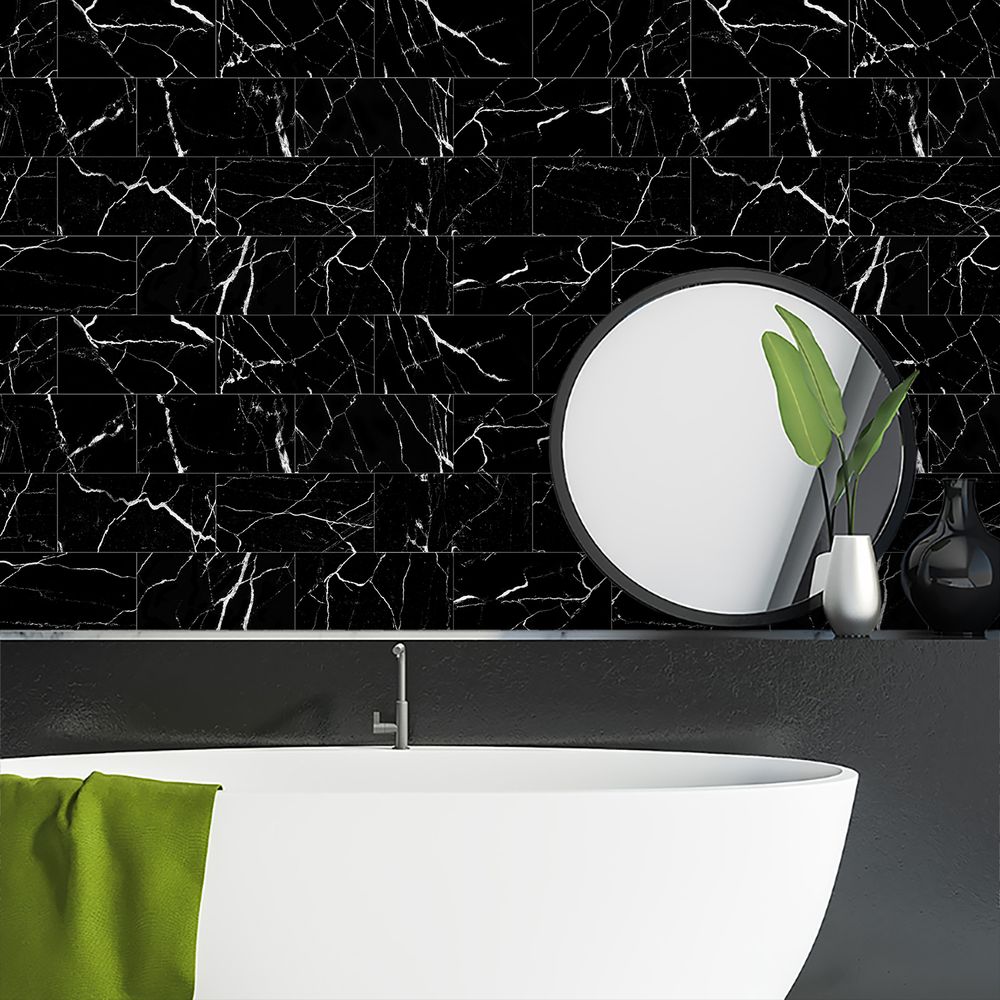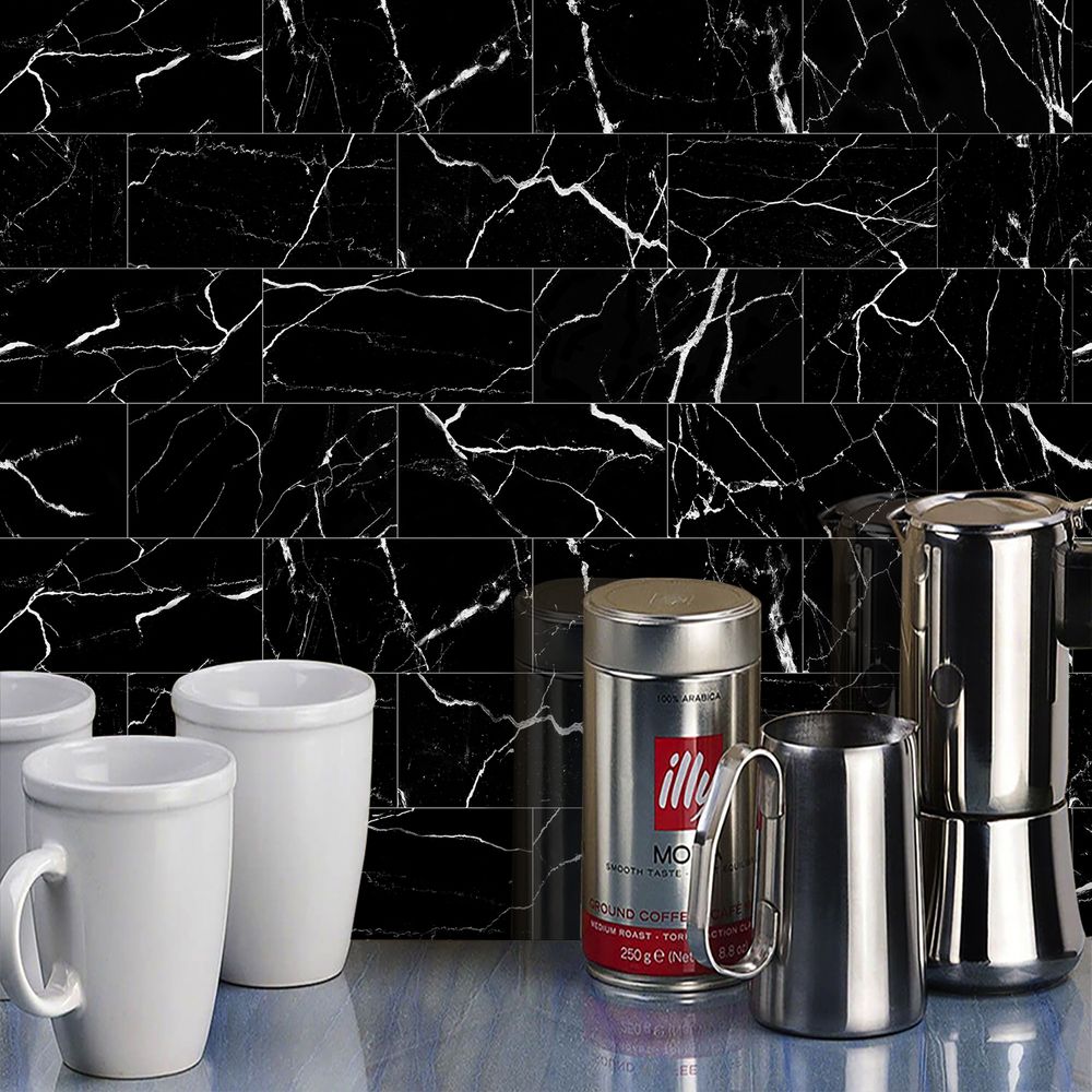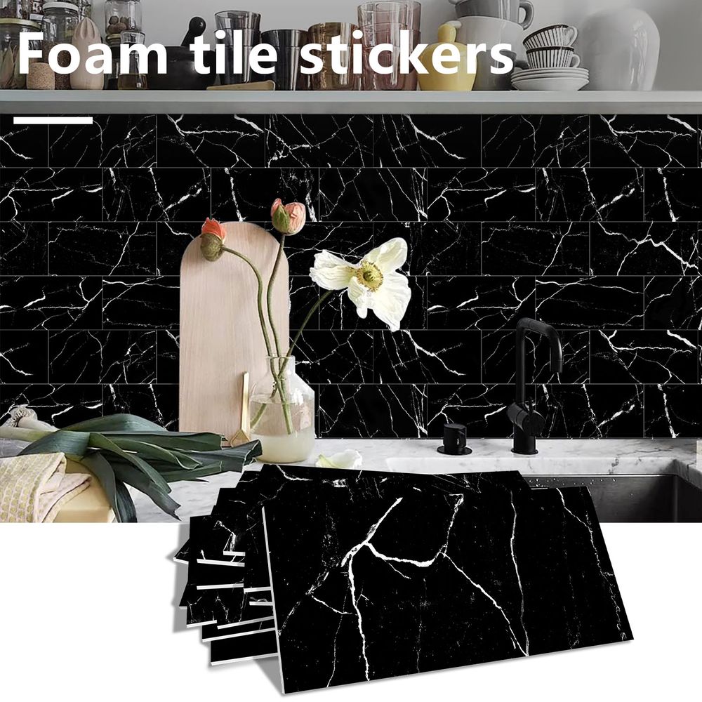 Black Marble Tile Wall Stickers Anti-splash Tiles Kitchen Bathroom Stickers PVC Foam Interlayer Thickened Self-adhesive Waterproof And Oil-proof Wall Panels Easy To Install