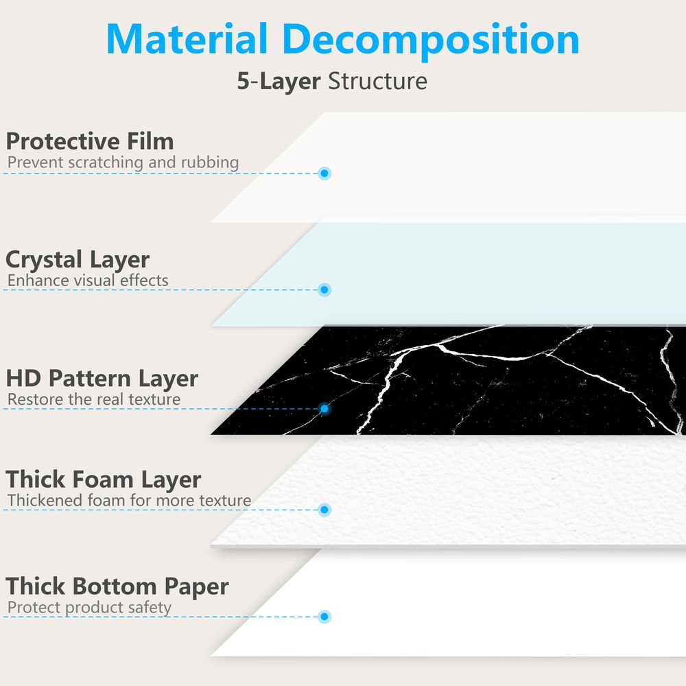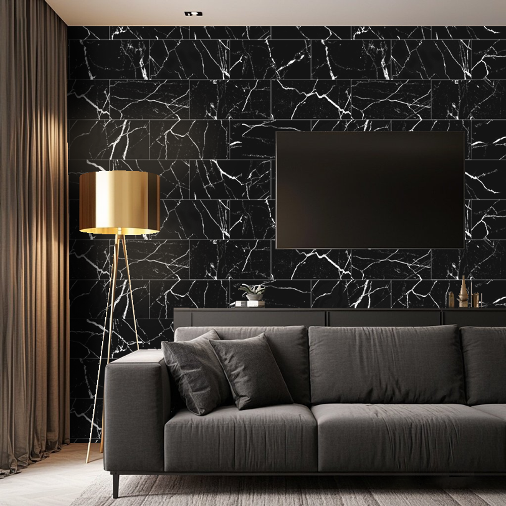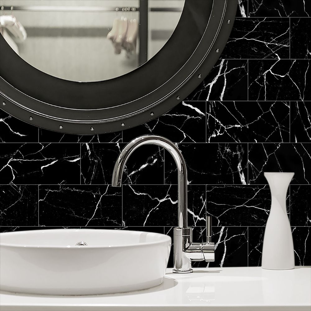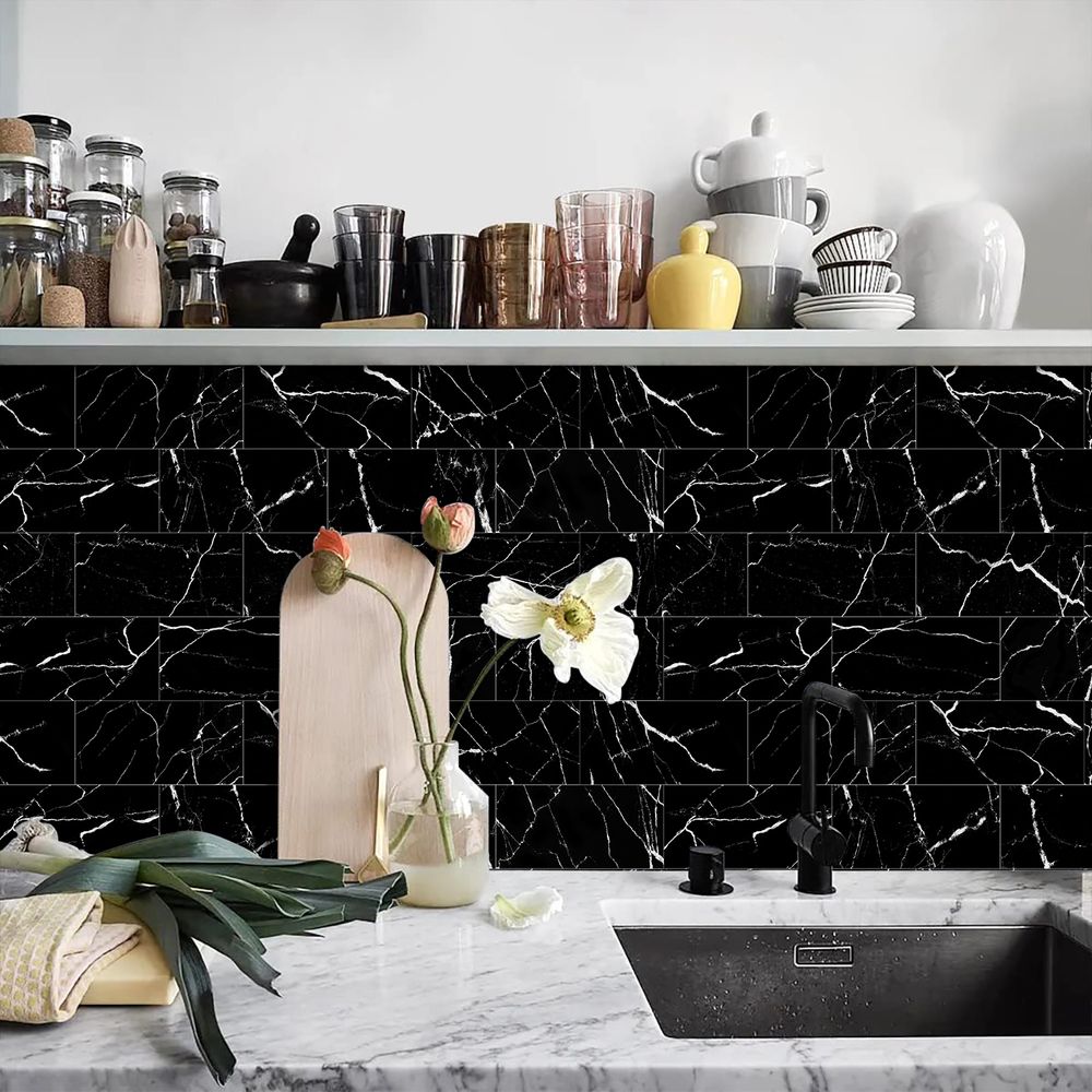 Black Marble Tile Wall Stickers Anti-splash Tiles Kitchen Bathroom Stickers PVC Foam Interlayer Thickened Self-adhesive Waterproof And Oil-proof Wall Panels Easy To Install