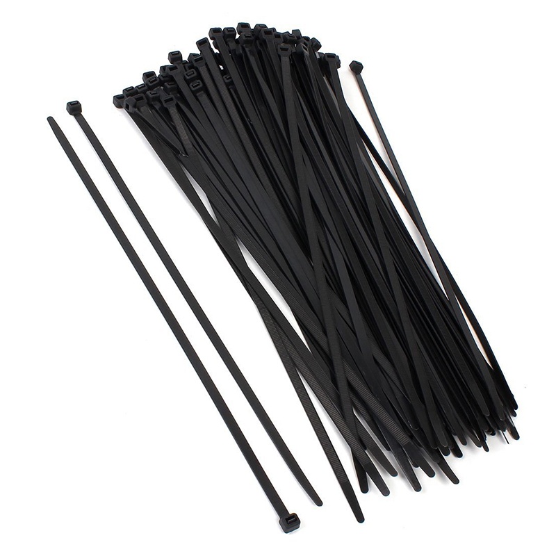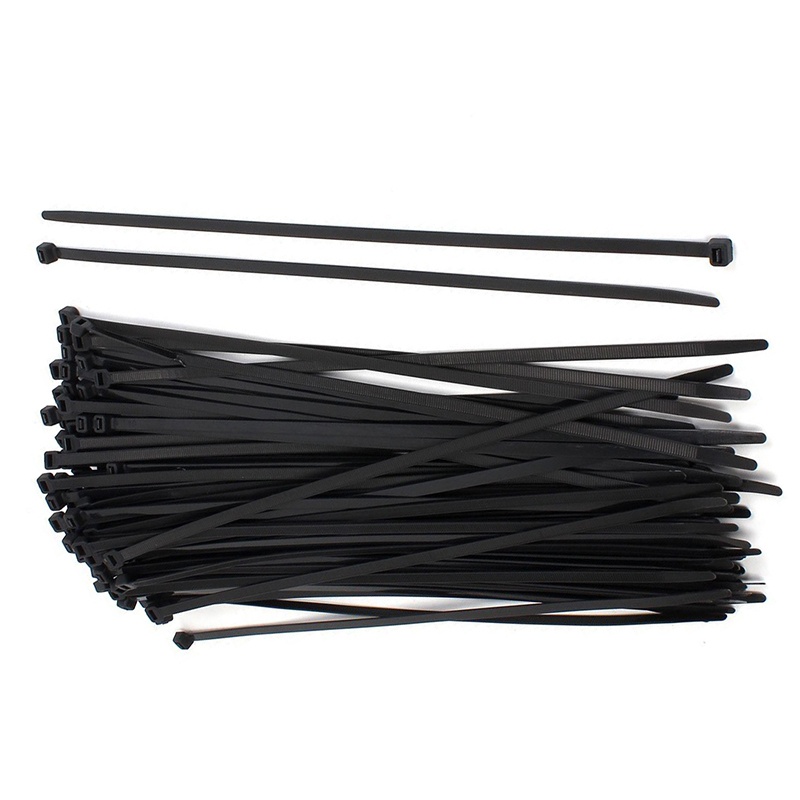 100Pcs Black Nylon Network Cord Cable Zip Wire Tie Fastener 16" Consisted of a toothed strip with a one-way ratcheting hole at one end. You slide the pointed end into the hole then pull it tight, it will not loosen up. Used widely bundling interior connecting wire of TV set, computer, home appliances, lamp decor, electric toy,etc. Also be used for fixing piping of mechanical machine or other things. Material: Nylon Main Color: Black Each Size: 7.2 x 400mm/ 0.28" x 16"(W*L) Design: Self-Locking Package Content: 100Pcs(+/- 2%) x Cable Tie Note:Light shooting and different displays may cause the color of the item in the picture a little different from the real thing.The measurement allowed error is +/-1-3 cm.