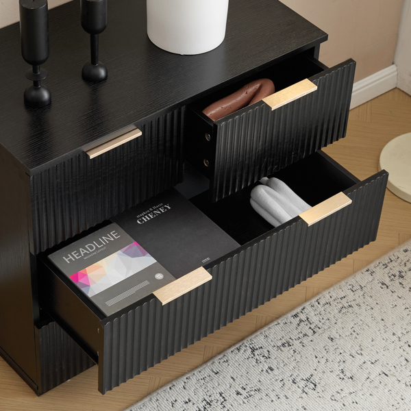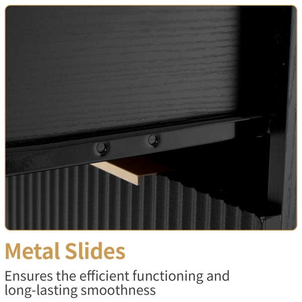 Wavy Pattern Drawers: The distinctive wavy pattern on the drawer fronts adds a modern and artistic touch to any bedroom decor, making it not only functional but also aesthetically pleasing.